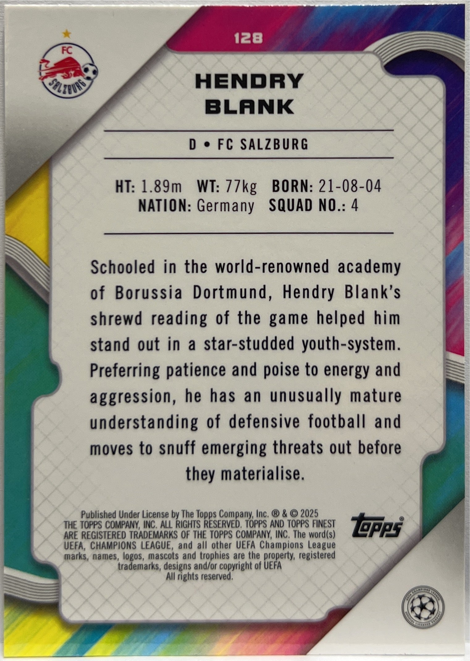Hendry Blank 285/299 Rookie Purple Topps Finest UCC 2024/25 FC Salzburg