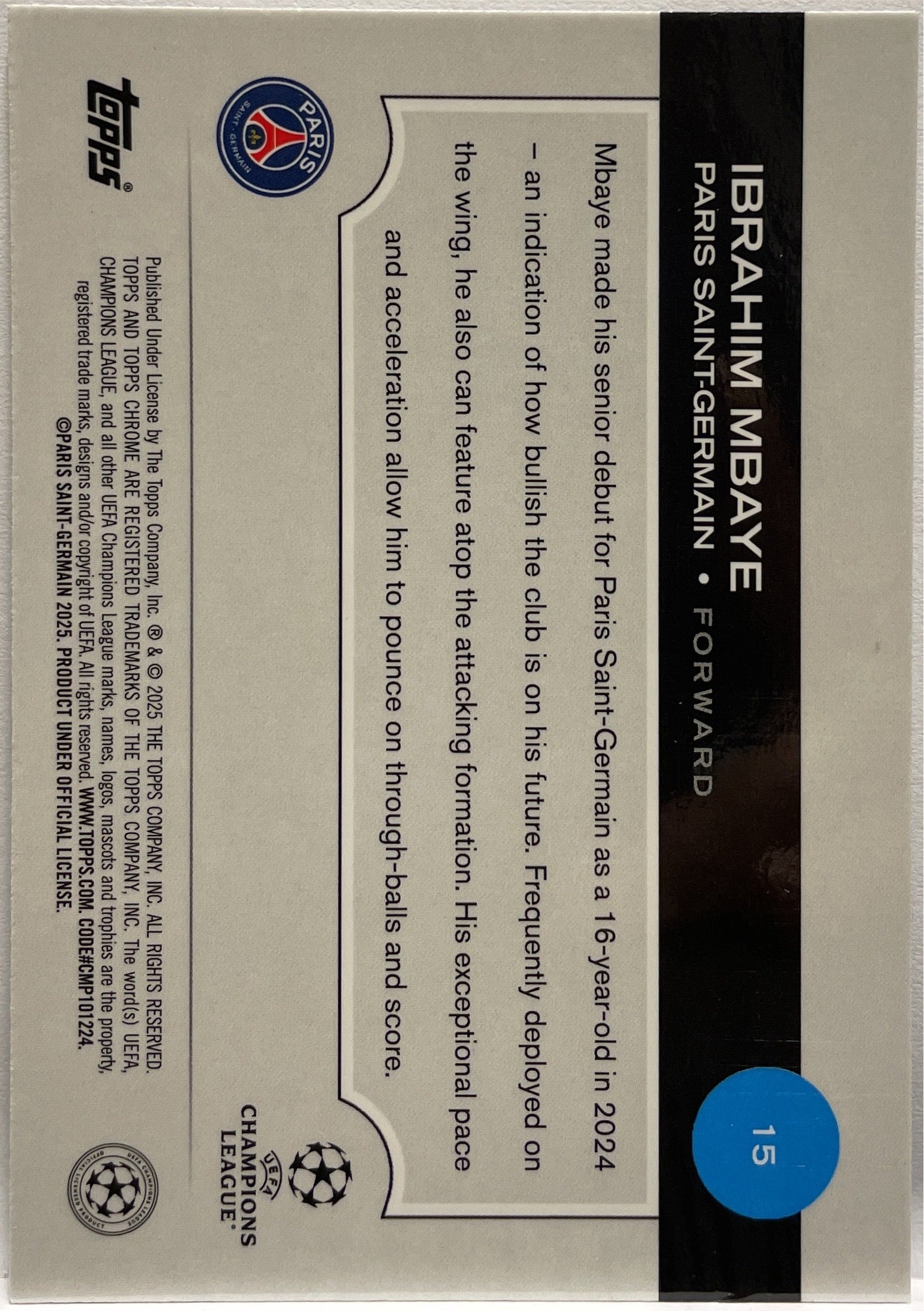 Ibrahim Mbaye 150/150 Rookie Blue Topps Chrome UCC 2024/25 PSG