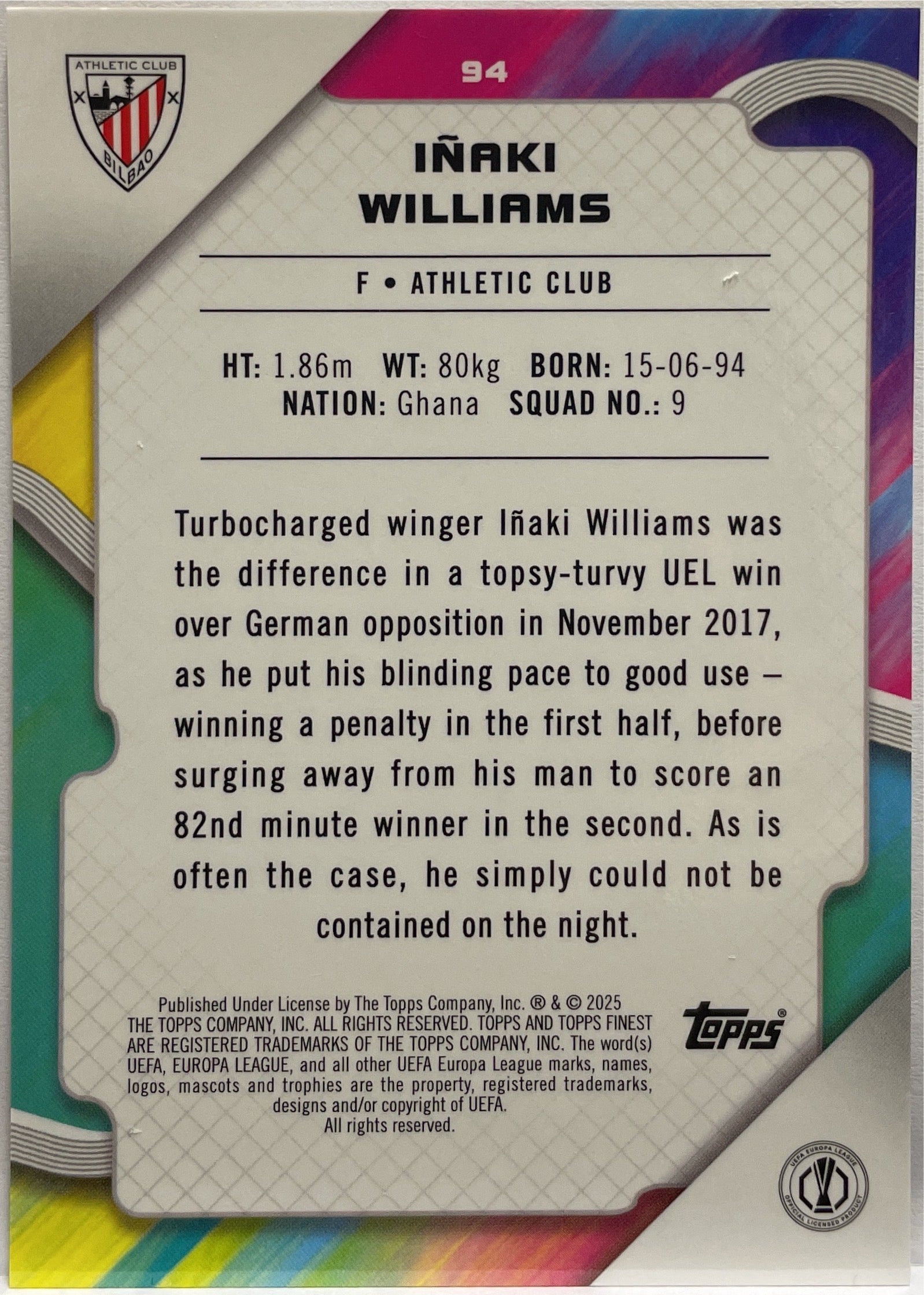 Inaki Williams 17/25 Orange Topps Finest UCC 2024/25 Athletic Club