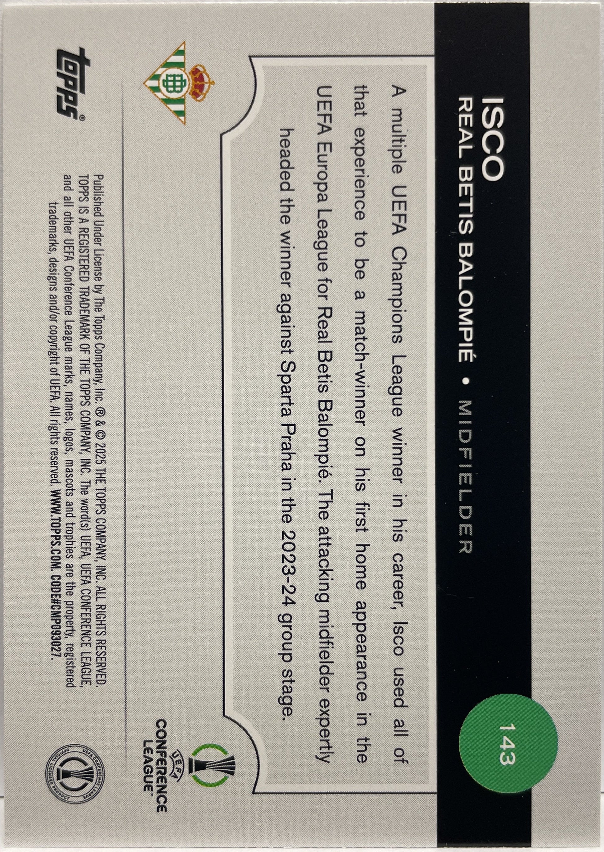 Isco Purple Flowfractor Topps UCC 2024/25 Real Betis Balompie
