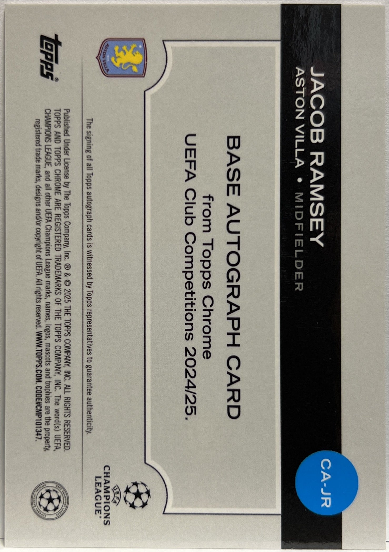 Jacob Ramsey 39/99 Autograph Green Topps Chrome UCC 2024/25 Aston Villa