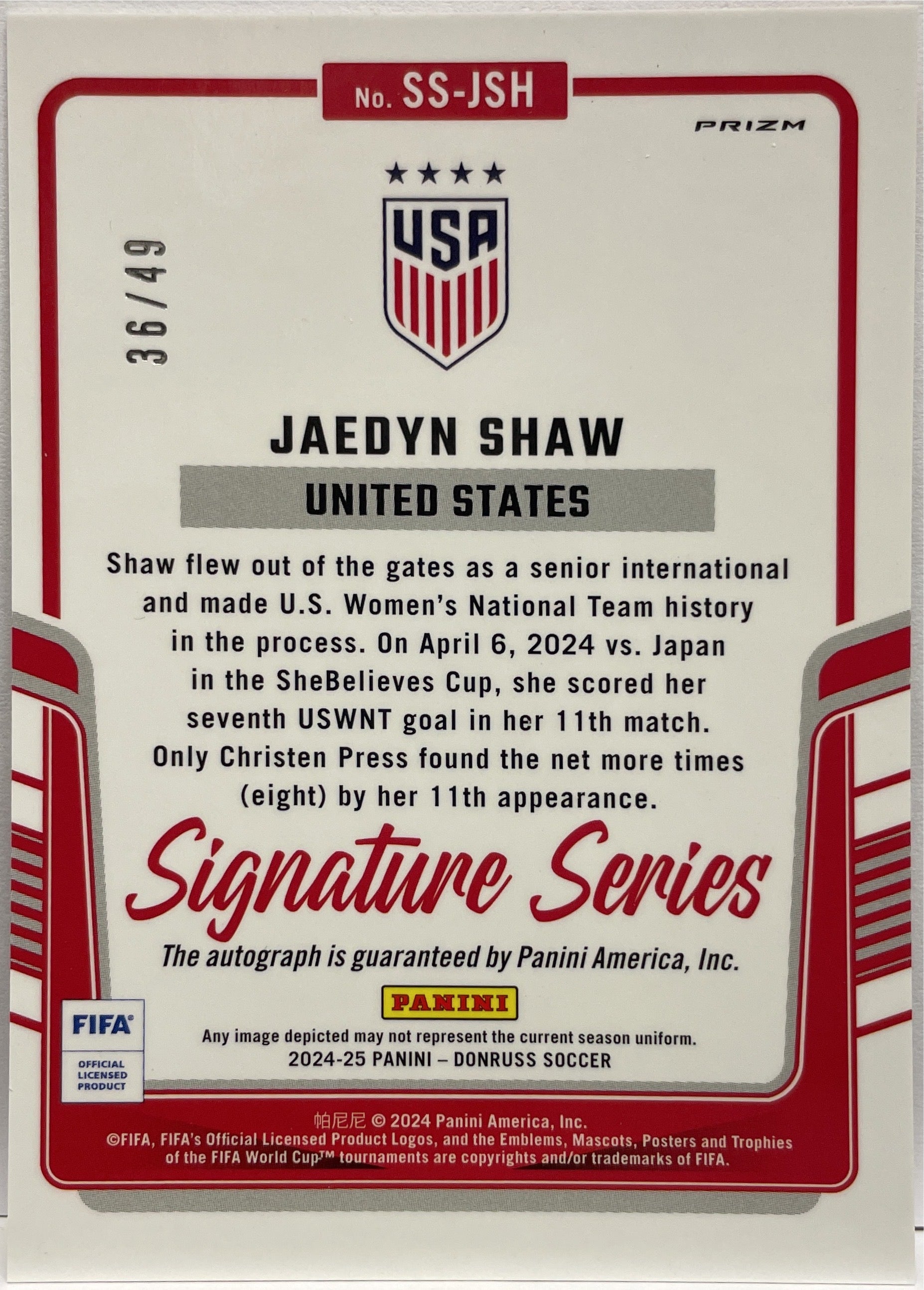 Jaedyn Shaw 36/49 Autograph Signature Series Red Donruss Fifa 2024/25 United States