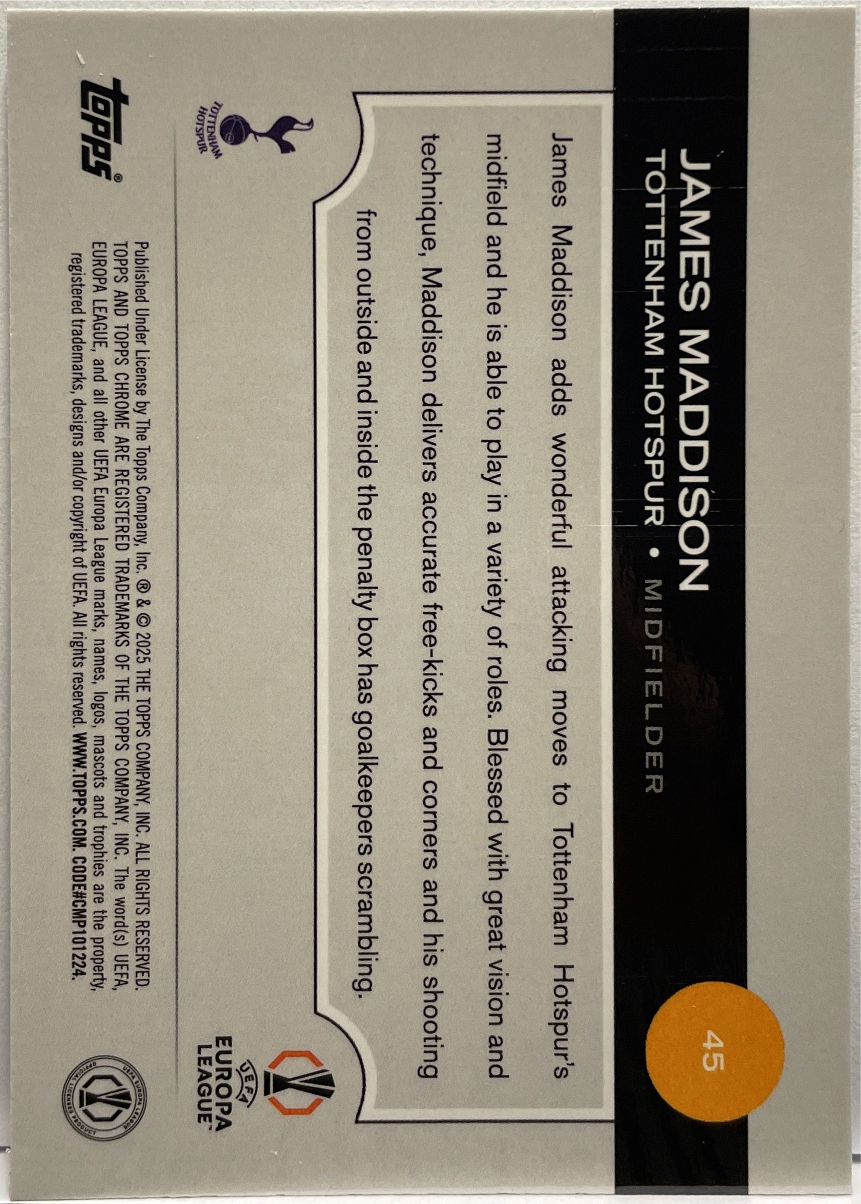 James Maddison 161/199 Aqua Lava Topps Chrome UCC 2024/25 Tottenham