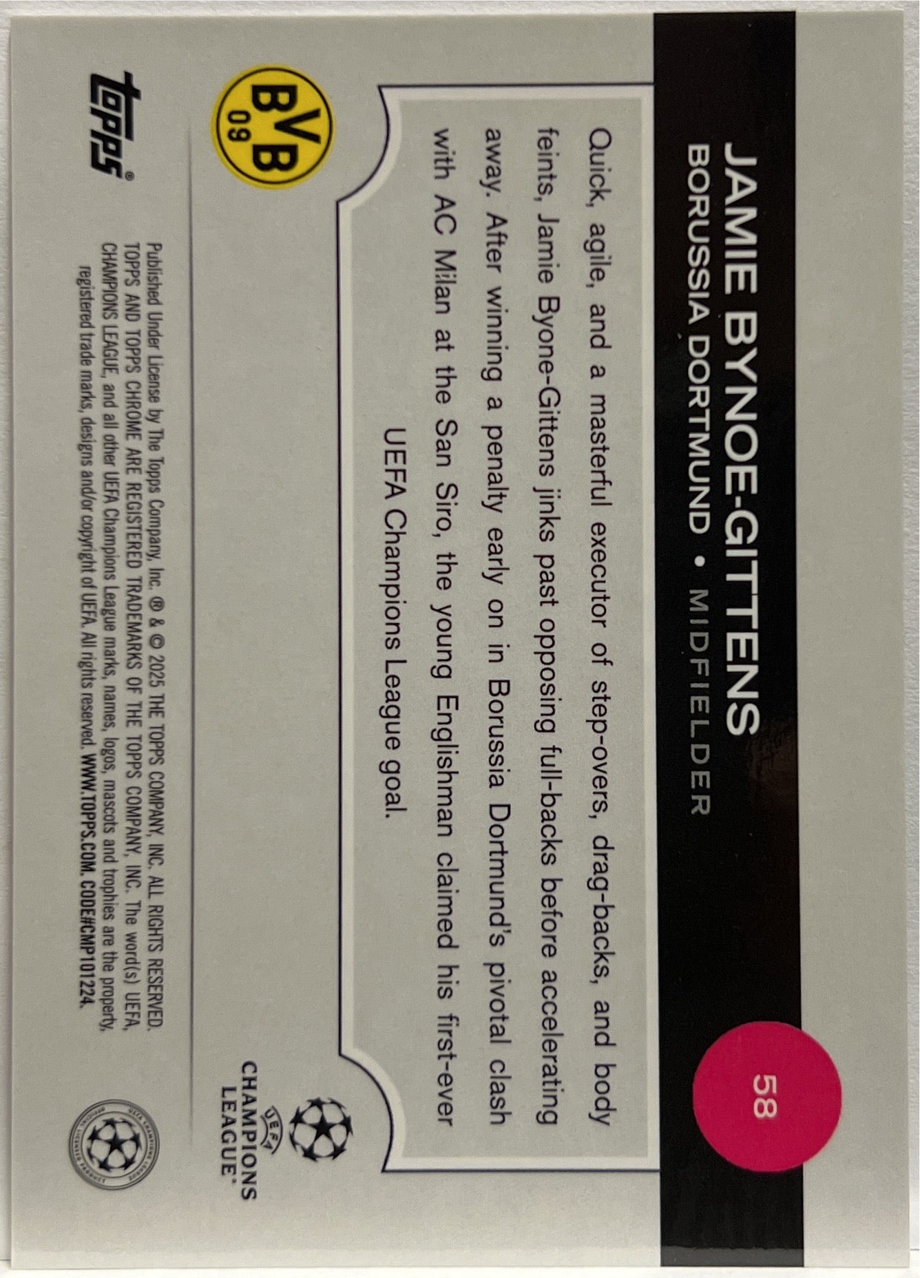 Jamie Bynoe Gittens 40/50 Gold Topps Chrome UCC 2024/25 Borussia Dortmund