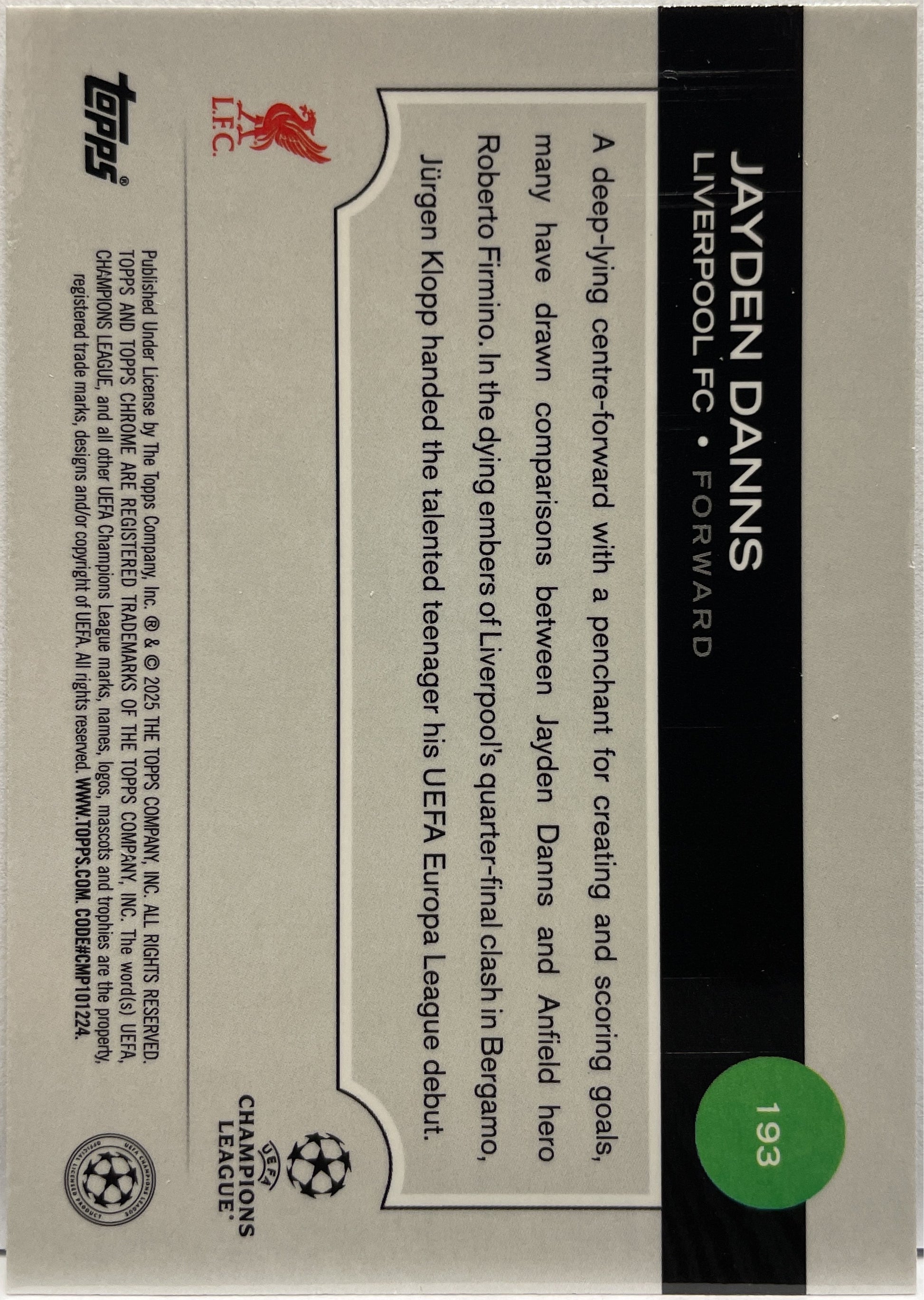 Jayden Danns 13/199 Rookie Aqua Lava Topps Chrome UCC 2024/25 Liverpool