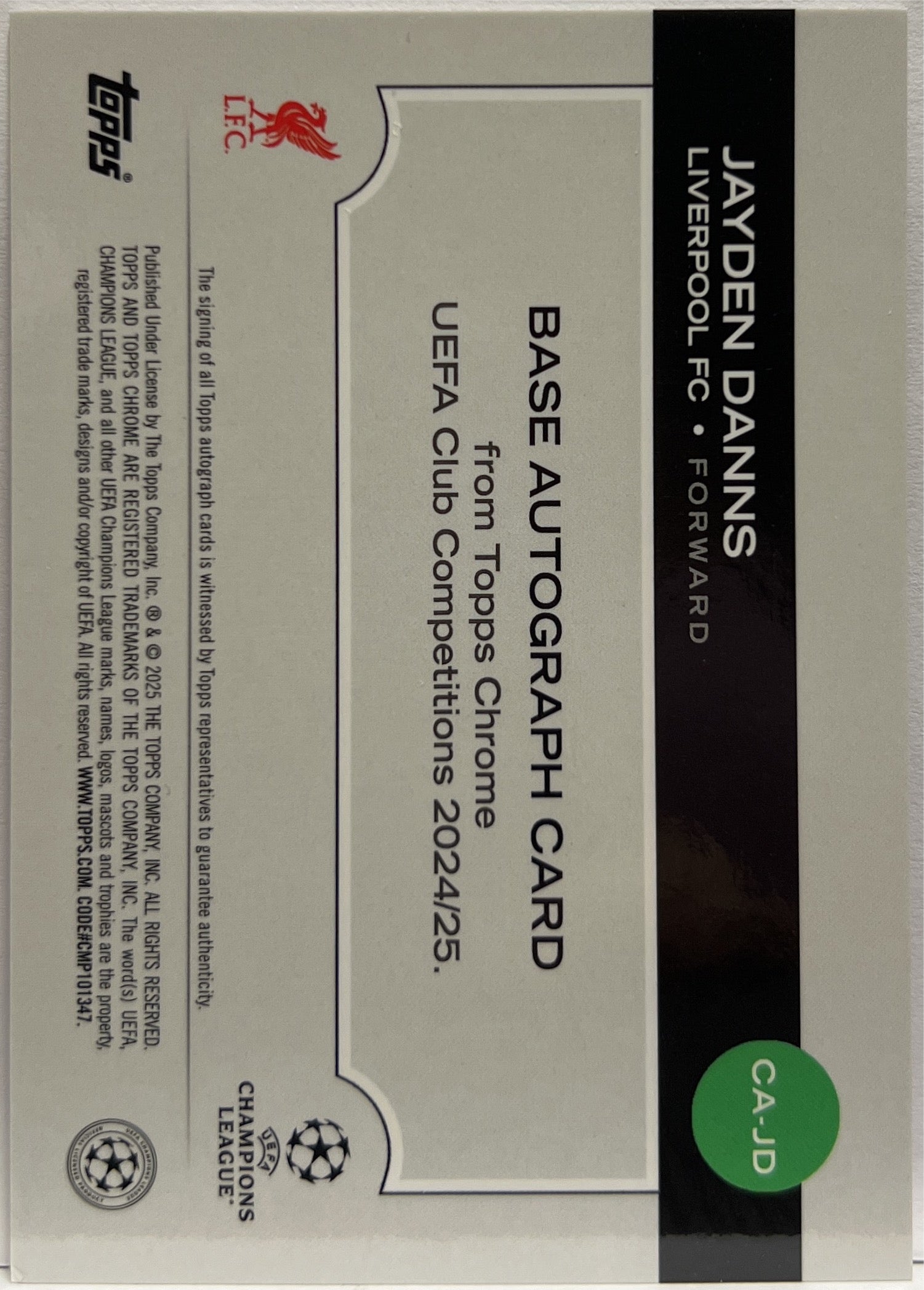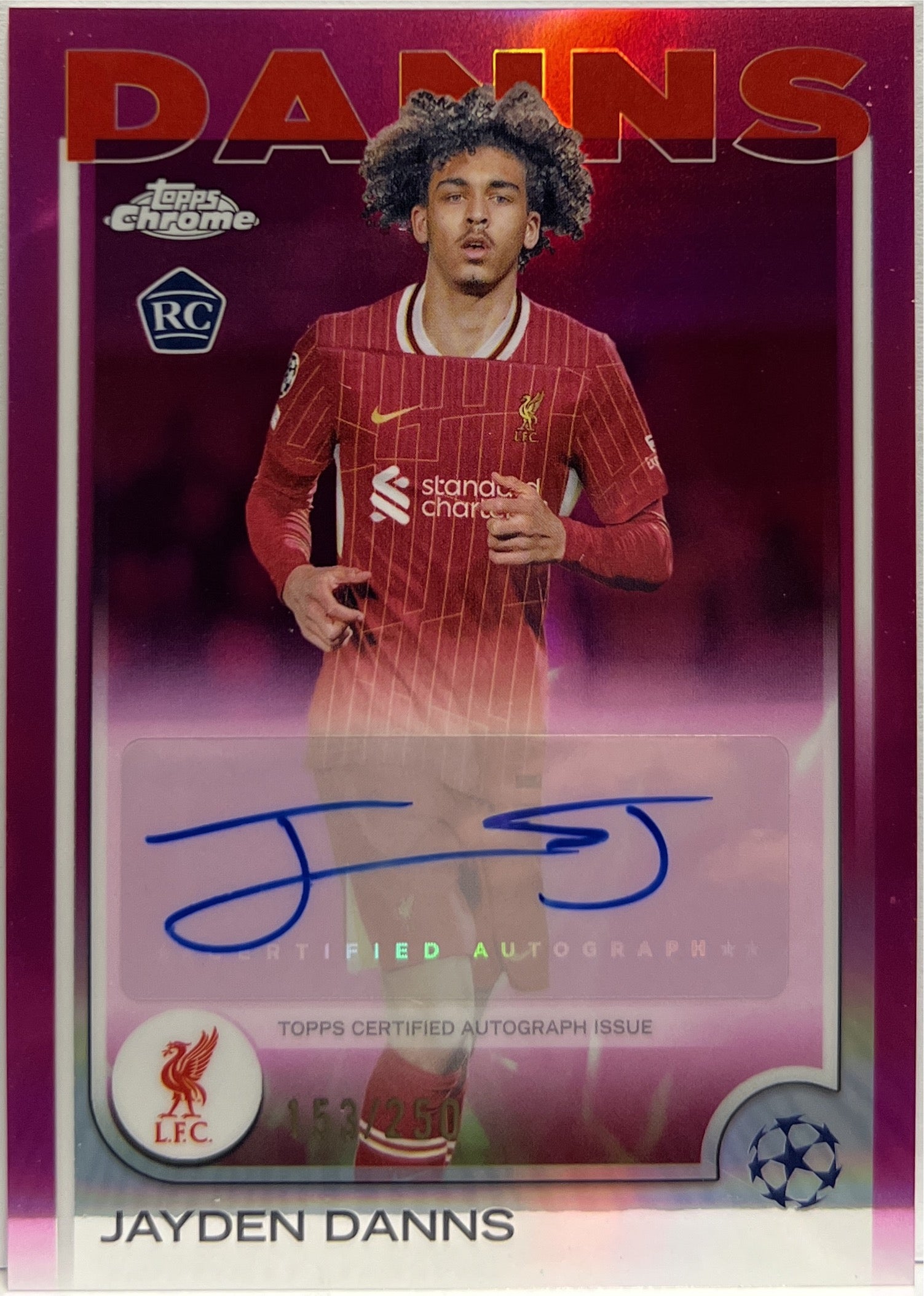 Jayden Danns 153/250 Rookie Autograph Pink Topps Chrome UCC 2024/25 Liverpool FC