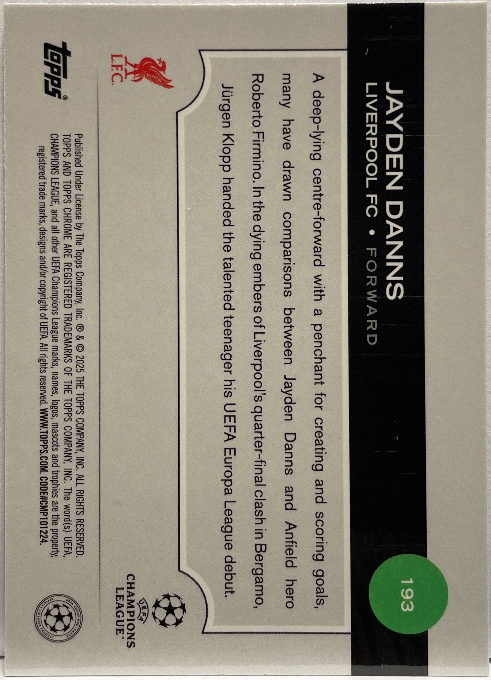 Jayden Danns 67/150 Rookie Blue Lava Topps Chrome UCC 2024/25 Liverpool