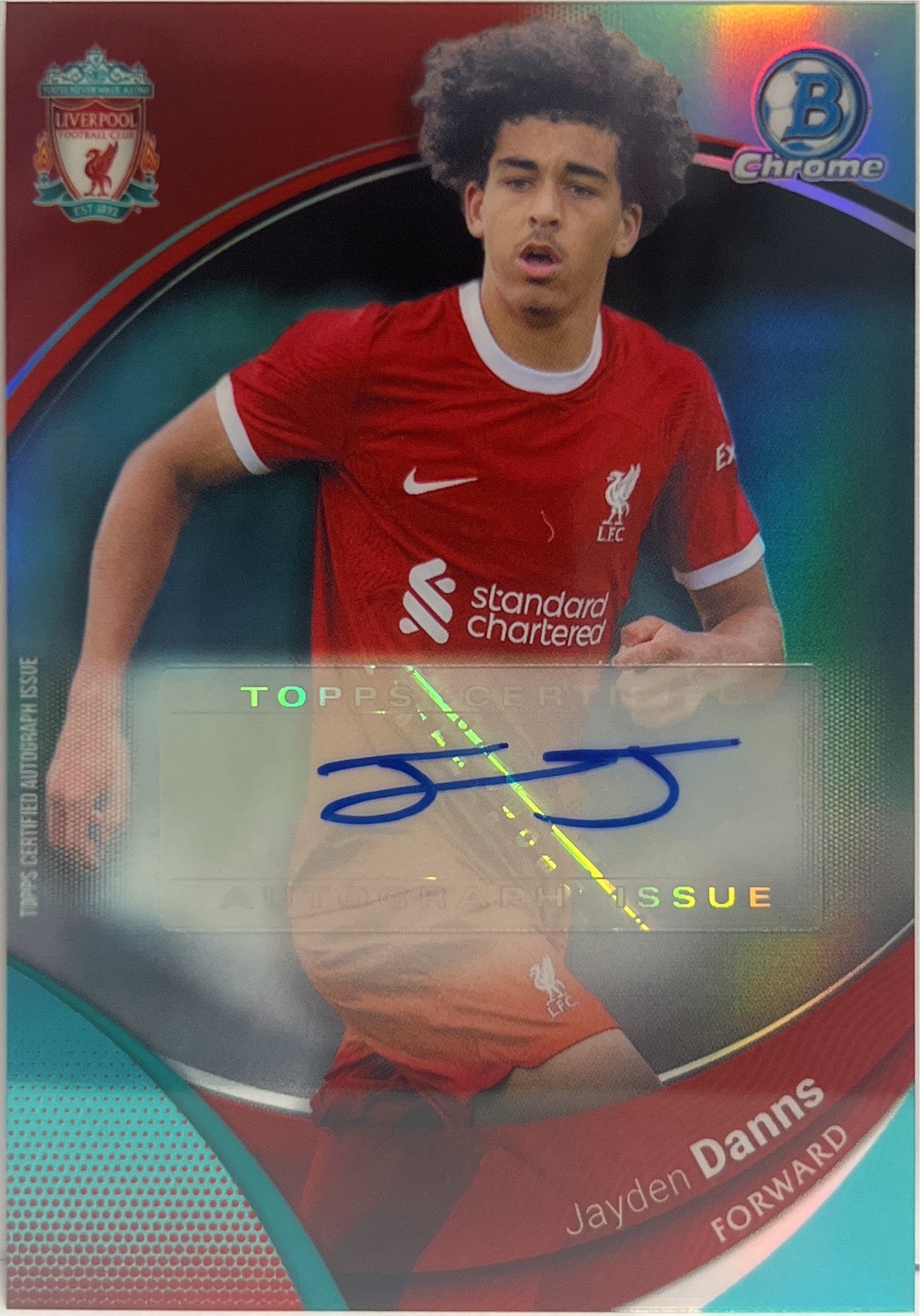 Jayden Danns 83/99 Autograph Bowman Aqua Topps Chrome Liverpool 2023/24