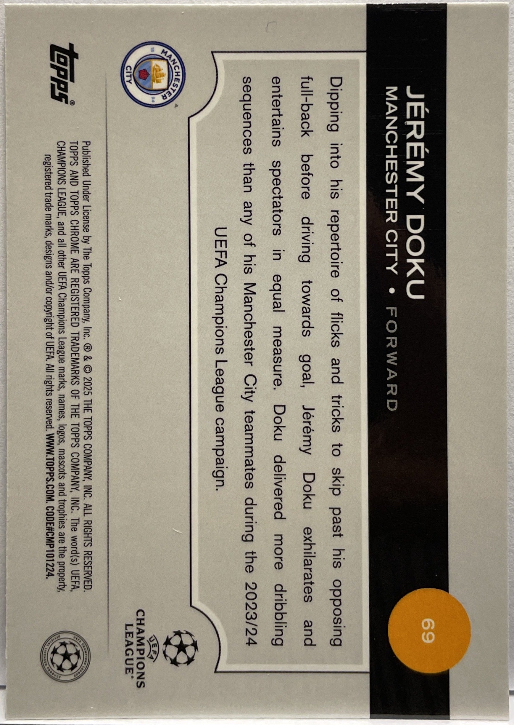 Jeremy Doku 40/150 Blue Topps Chrome UCC 2024/25 Manchester City