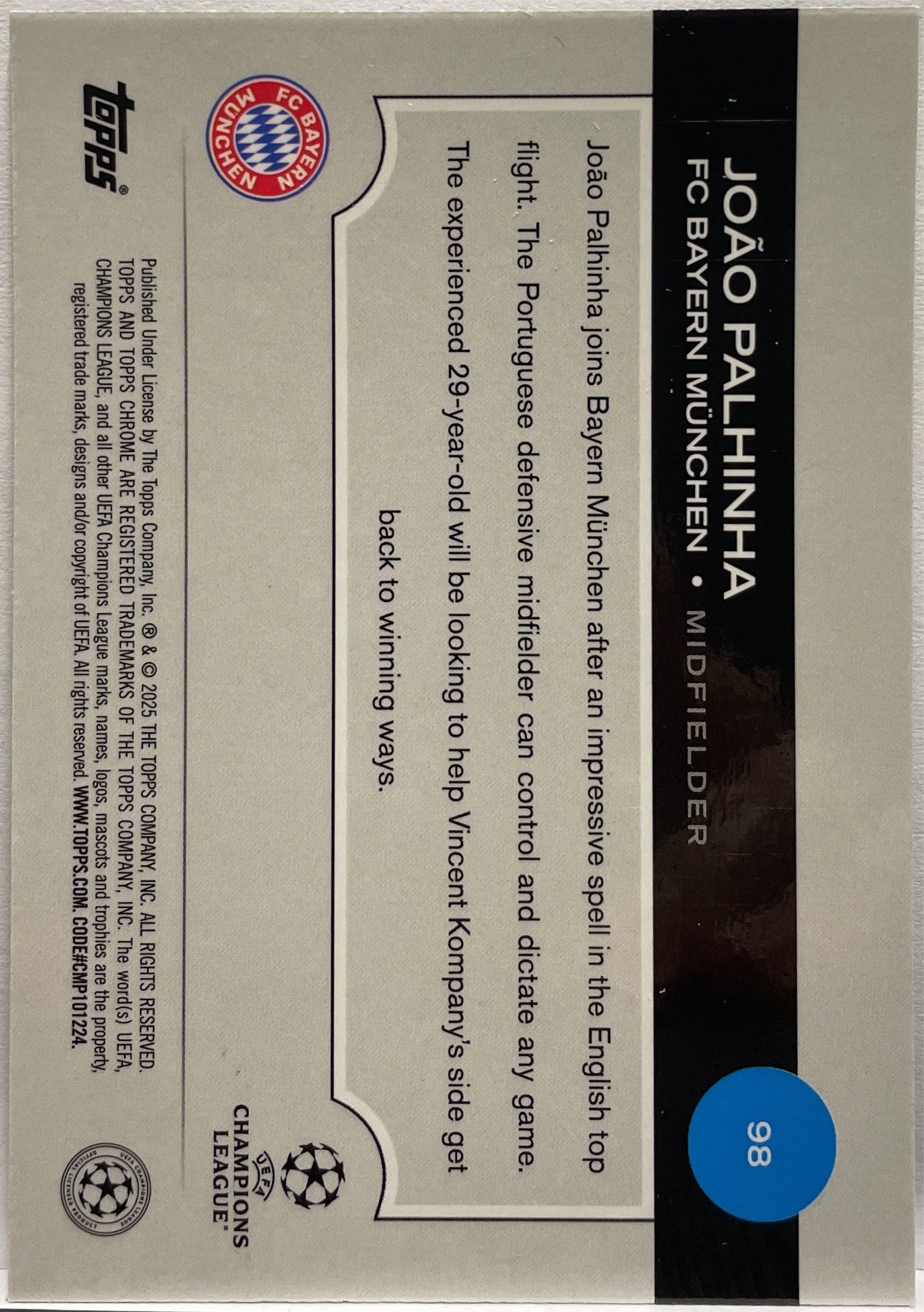 Joao Palhinha 122/150 Blue Lava Topps Chrome UCC 2024/25