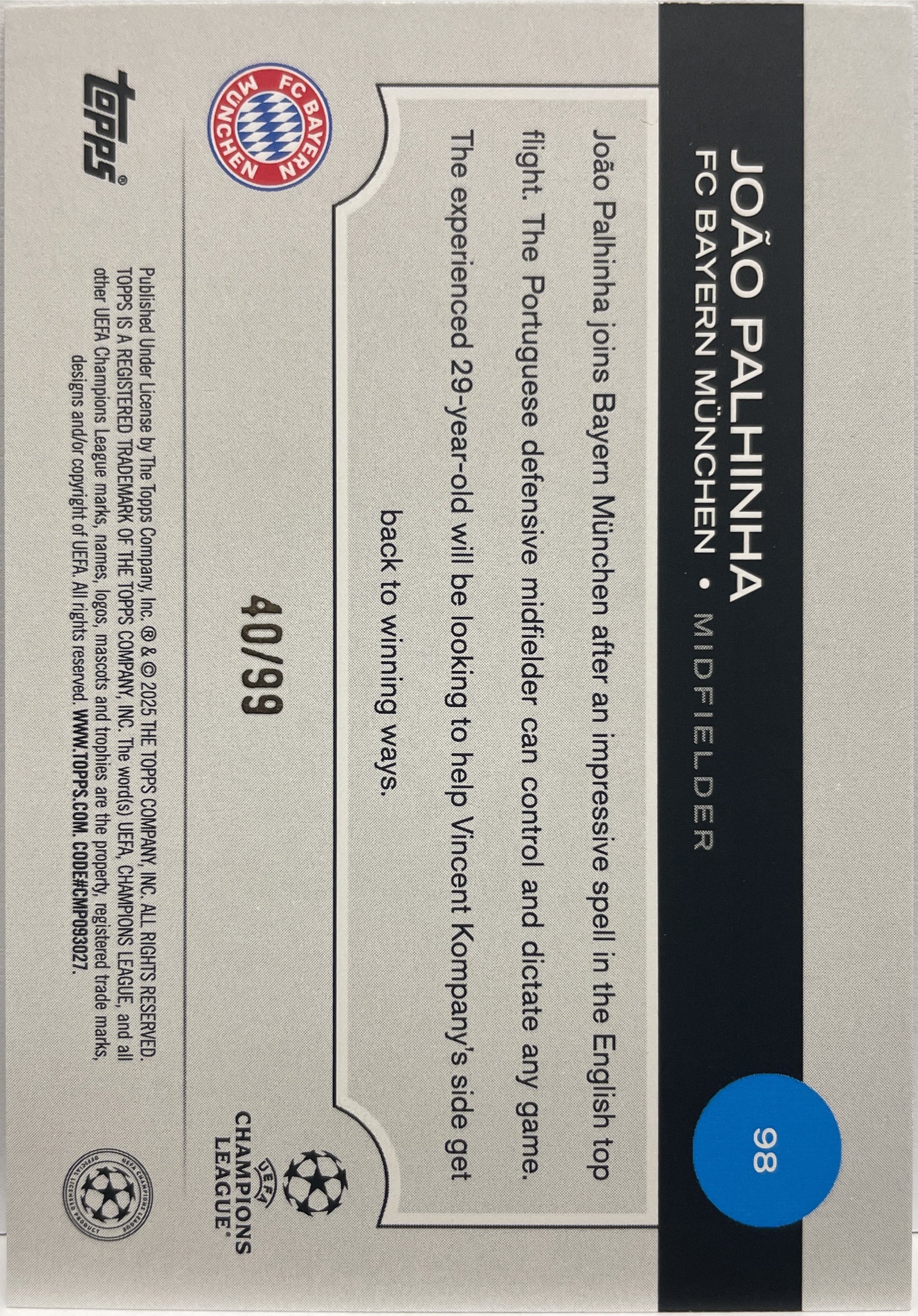 Joao Palhinha 40/99 Green Topps UCC 2024/25 FC Bayern Munchen