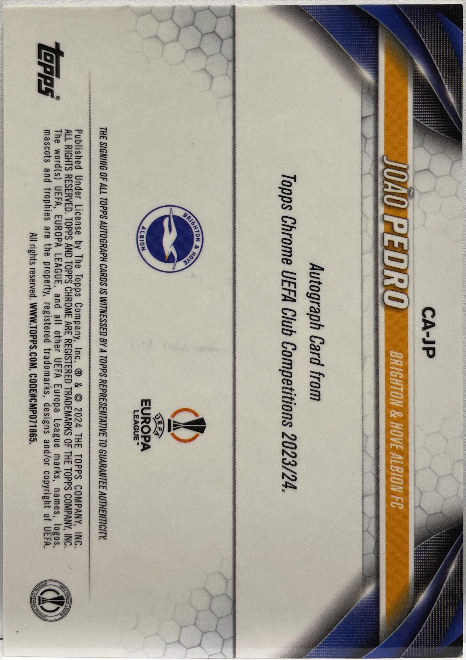 Joao Pedro 33/199 Autograph Aqua Topps Chrome UCC 2023/24 Brighton & Hove