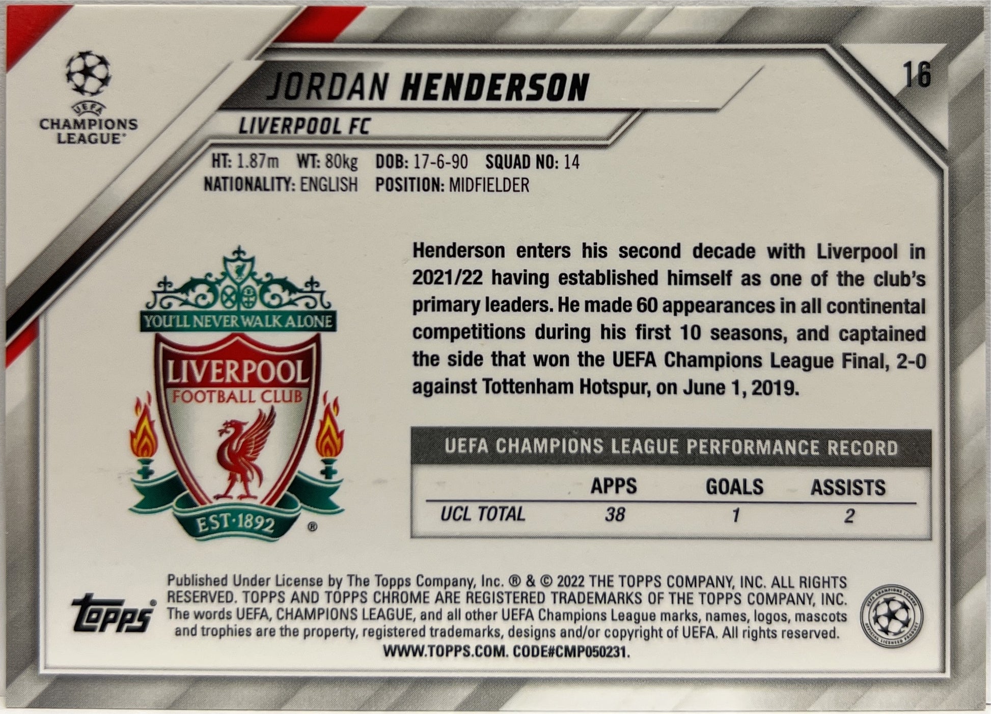 Jordan Henderson Gold Wave Topps Chrome UCL 2021/22 Liverpool FC