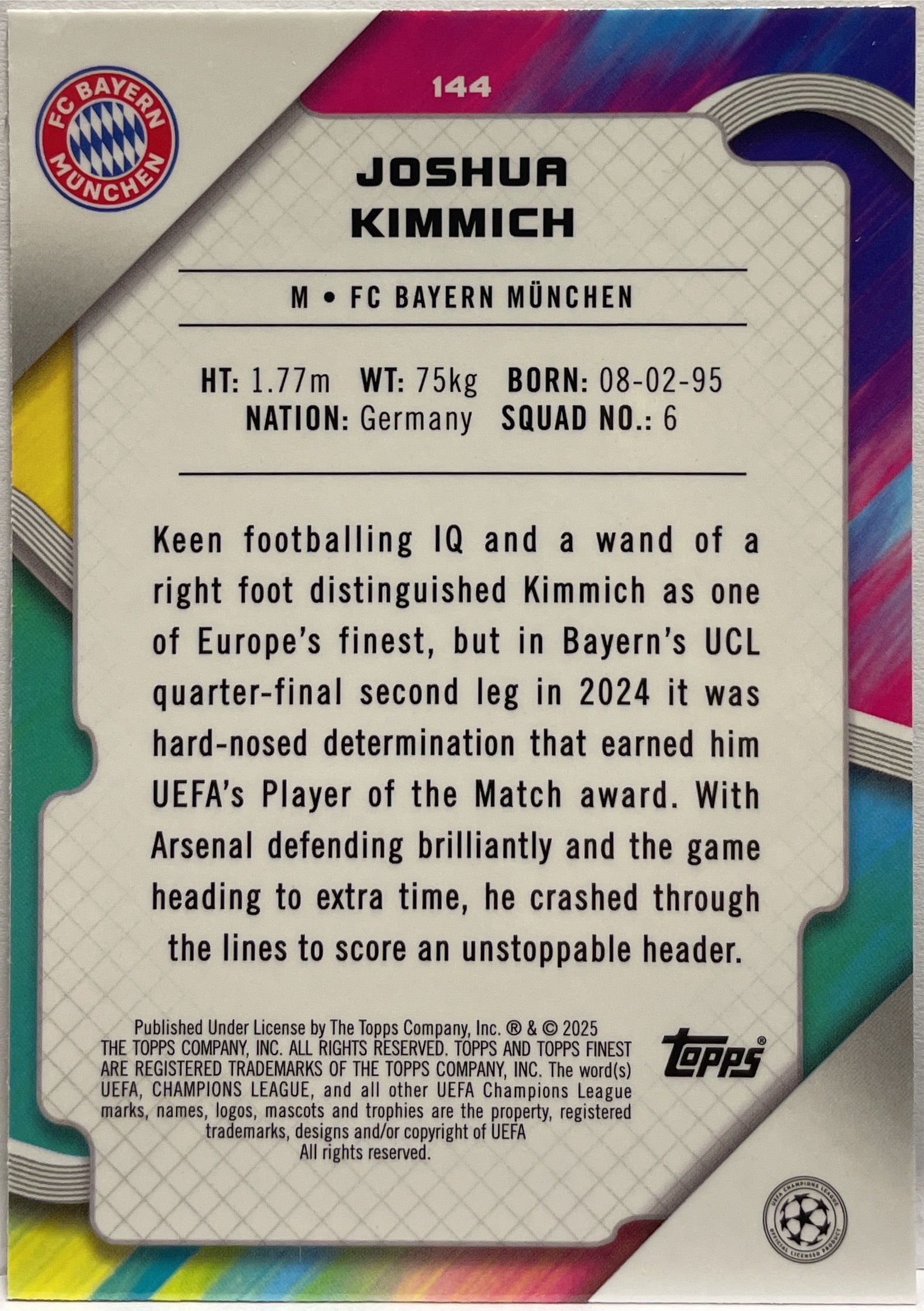 Joshua Kimmich 104/275 Sky Blue Topps Finest UCC 2024/25 FC Bayern Munchen