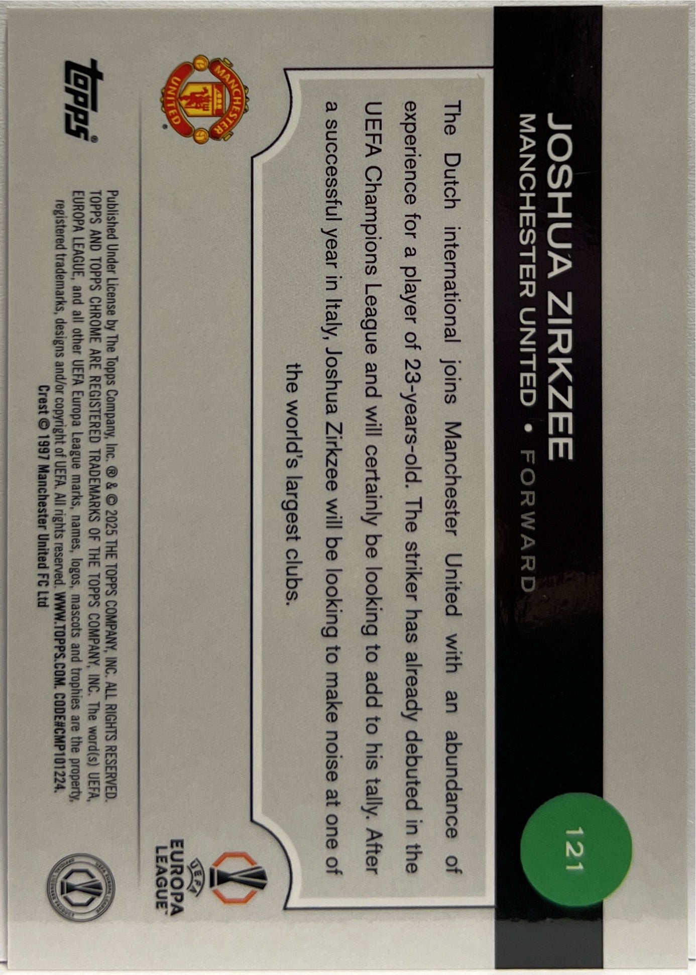 Joshua Zirkzee 4/10 Black Topps Chrome UCC 2024/25 Manchester United