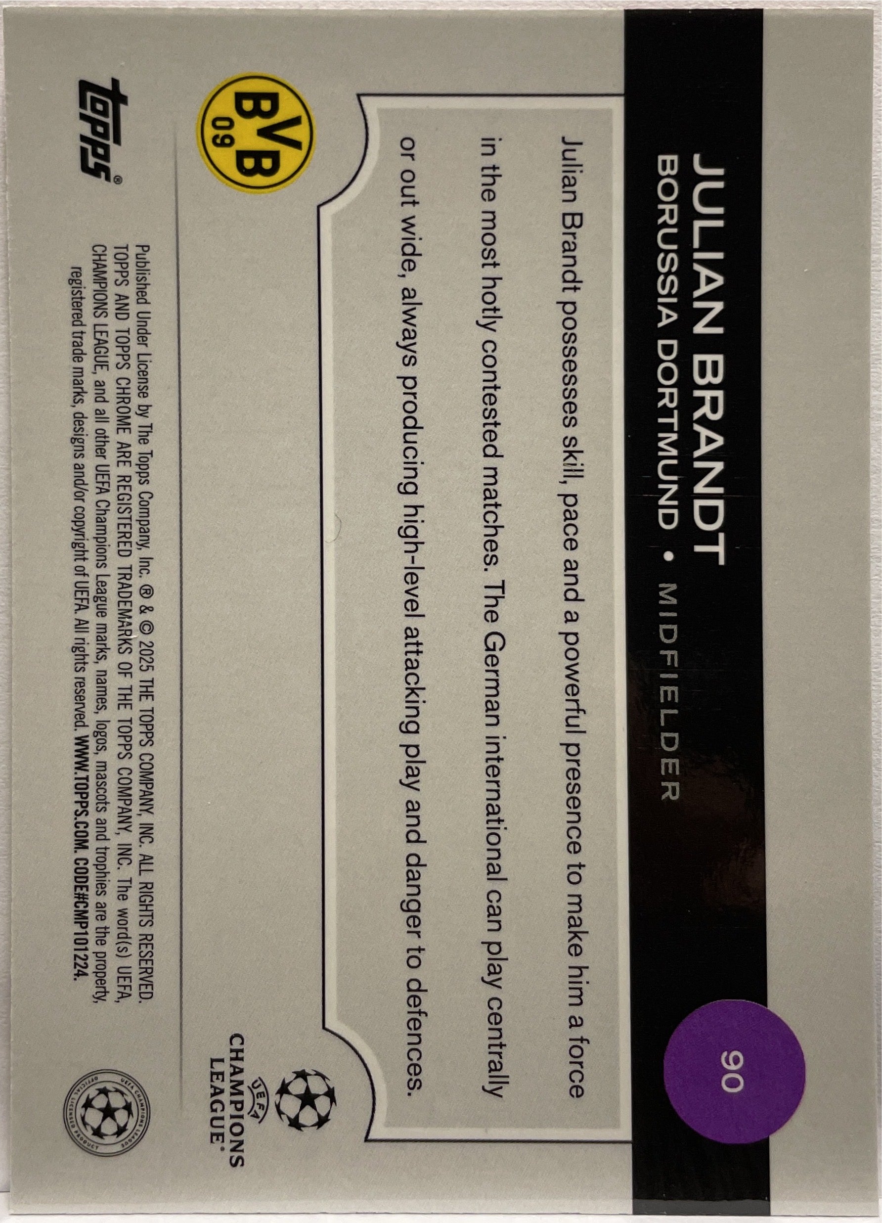 Julian Brandt 89/175 Pink RayWave Topps Chrome UCC 2024/25 Borussia Dortmund