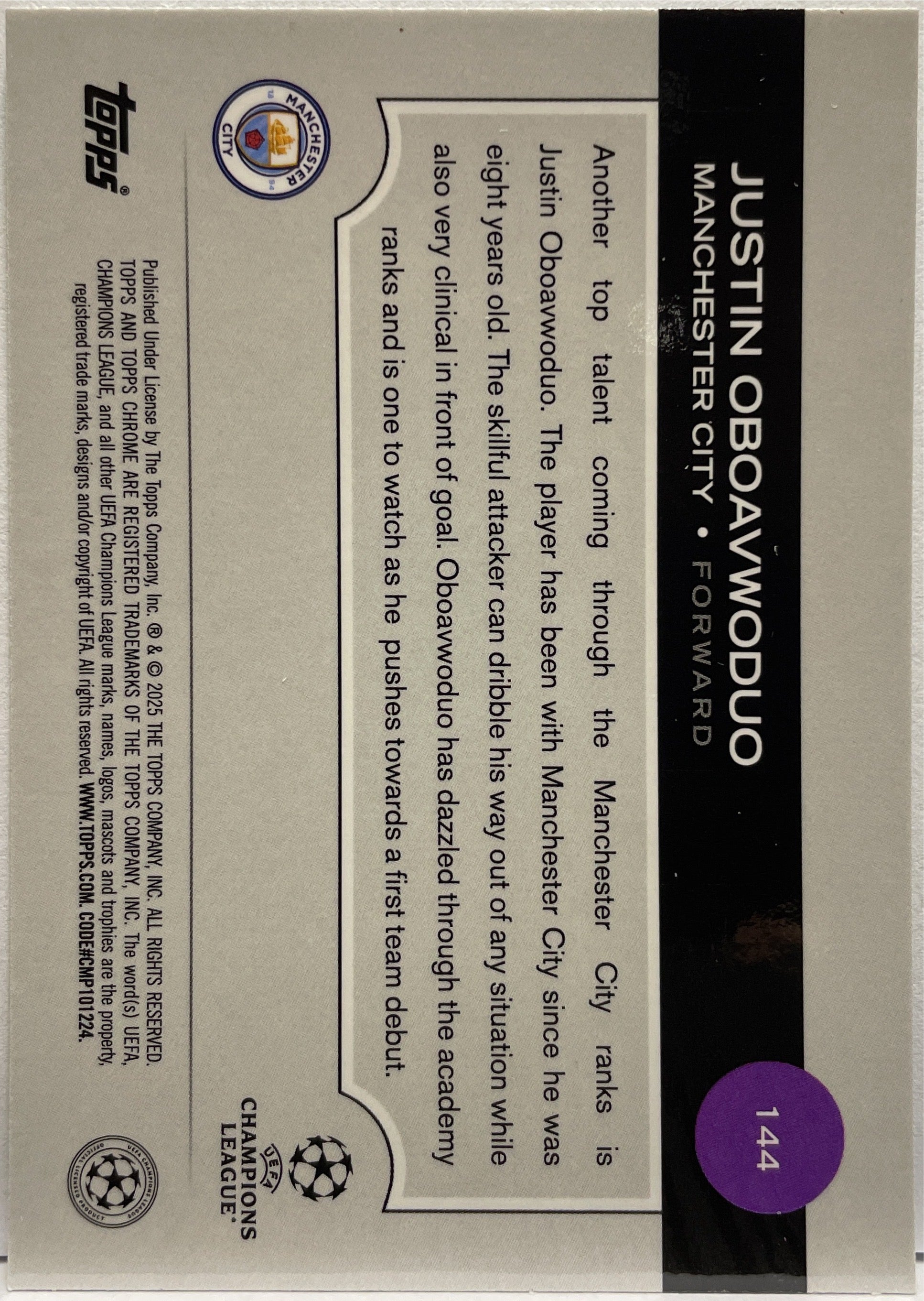 Justin Oboavwoduo 176/199 Rookie Aqua Topps Chrome UCC 2024/25 Manchester City
