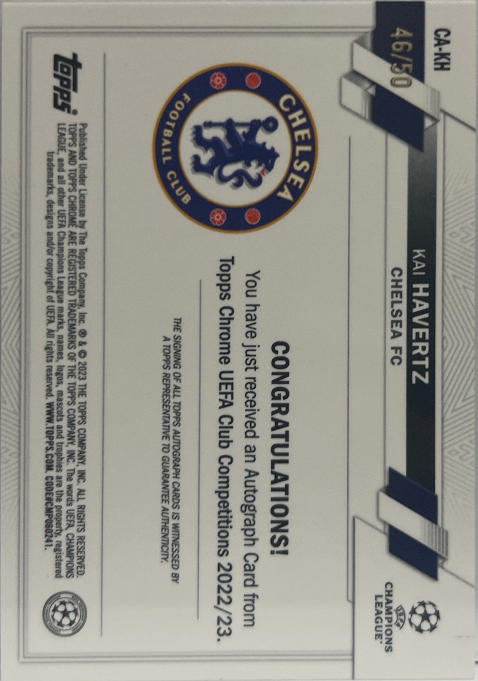 Kai Havertz 46/50 Autograph Gold Topps Chrome UCC 2022/23 Chelsea FC