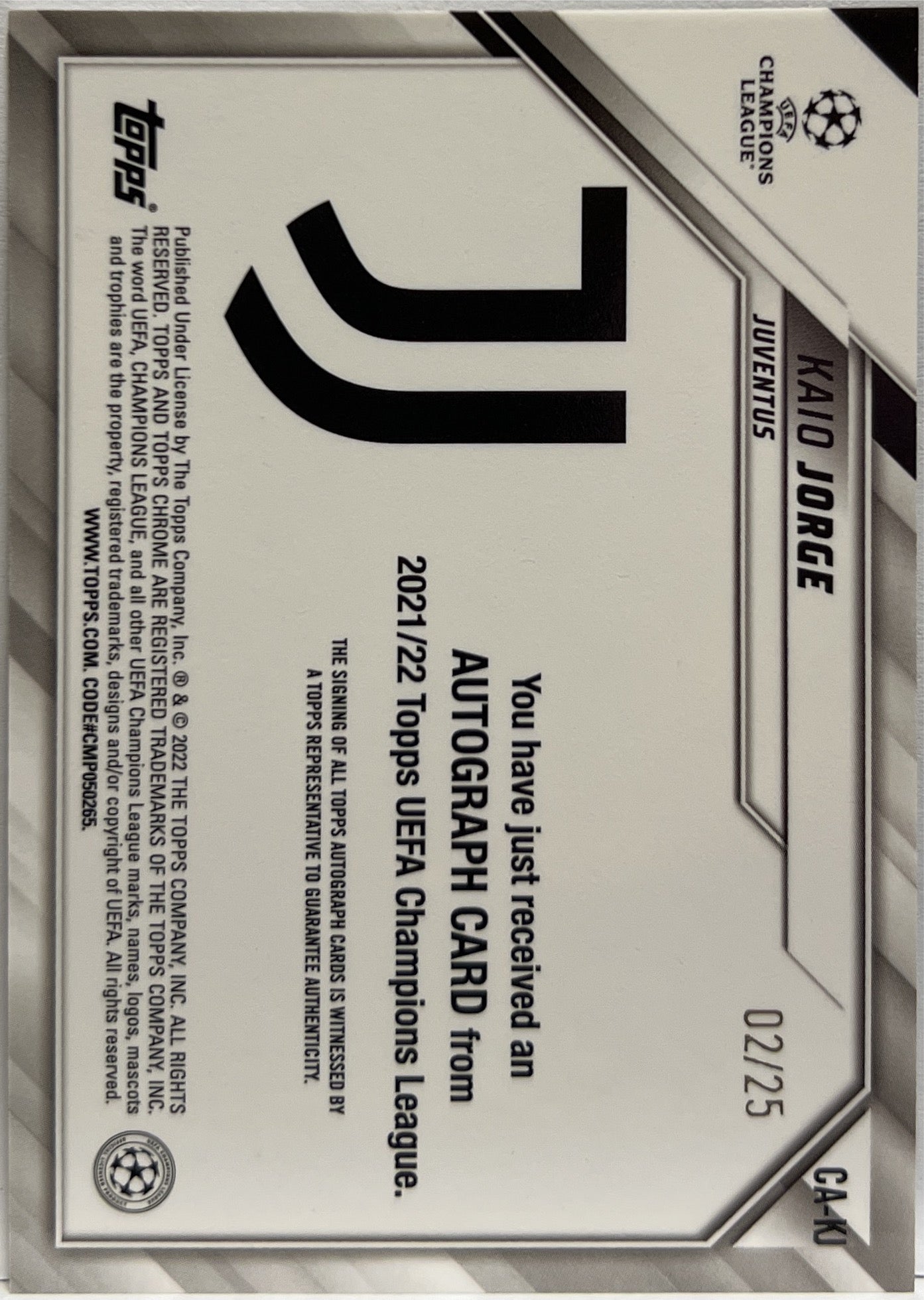 Kaio Jorge 2/25 Rookie Autograph Orange Topps Chrome UCL 2021/22 Juventus