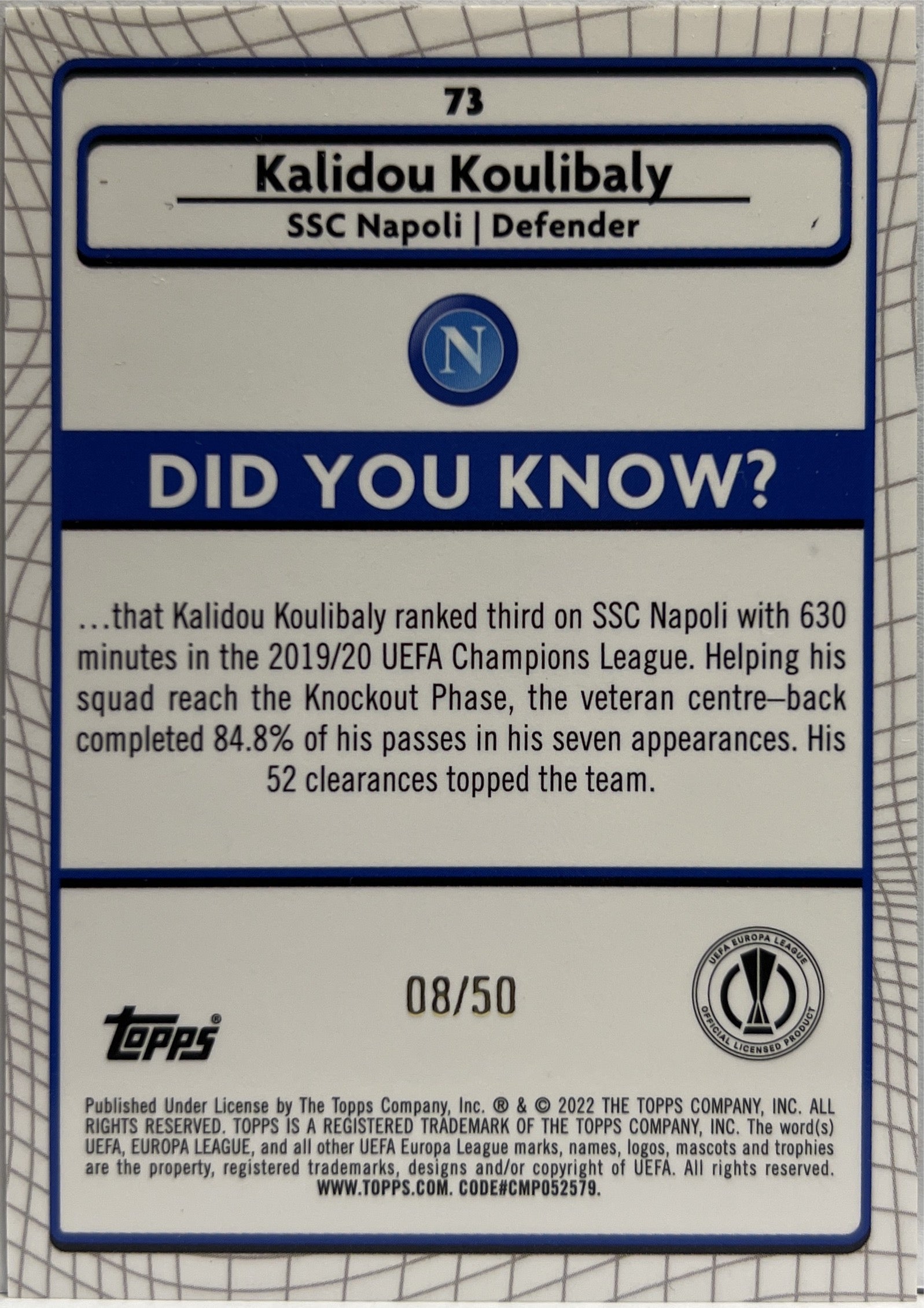Kalidou Koulibaly 8/50 Gold Topps Chrome Merlin 2021/22 SSC Napoli