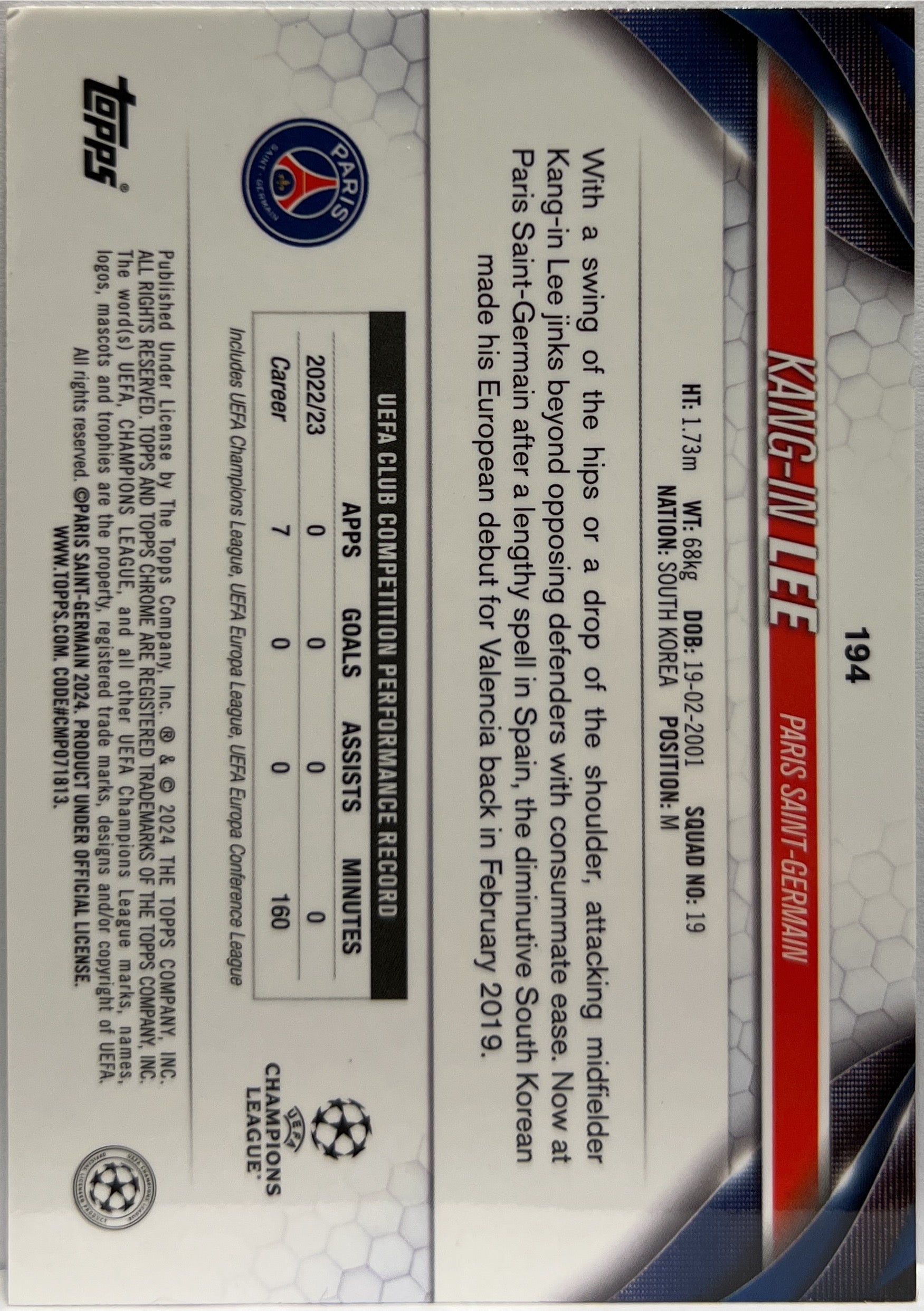 Kang In Lee 342/399 Green Shimmer Topps Chrome UCC 2023/24 PSG