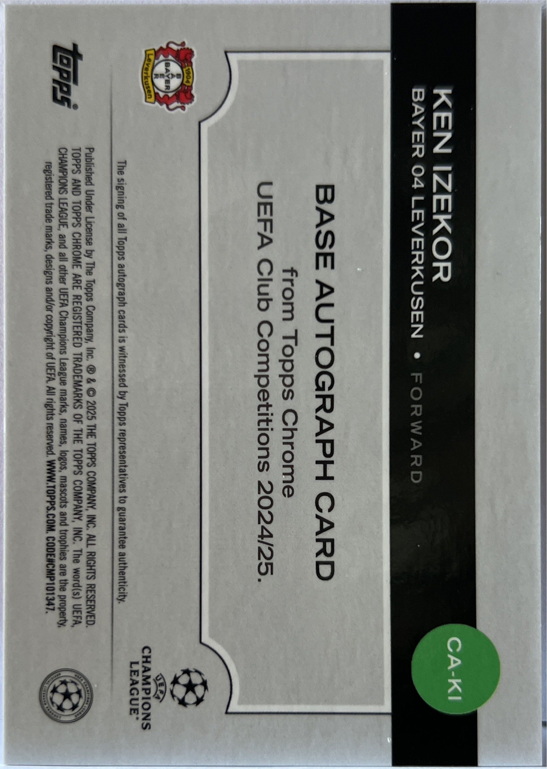 Ken Izekor 208/250 Rookie Autograph Pink Lava Topps Chrome UCC 2024/25 Bayer 04 Leverkusem
