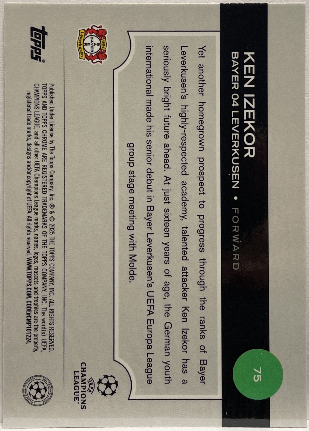 Ken Izekor 229/250 Rookie Pink Lava Topps Chrome UCC 2024/25 Bayer 04 Leverkusen