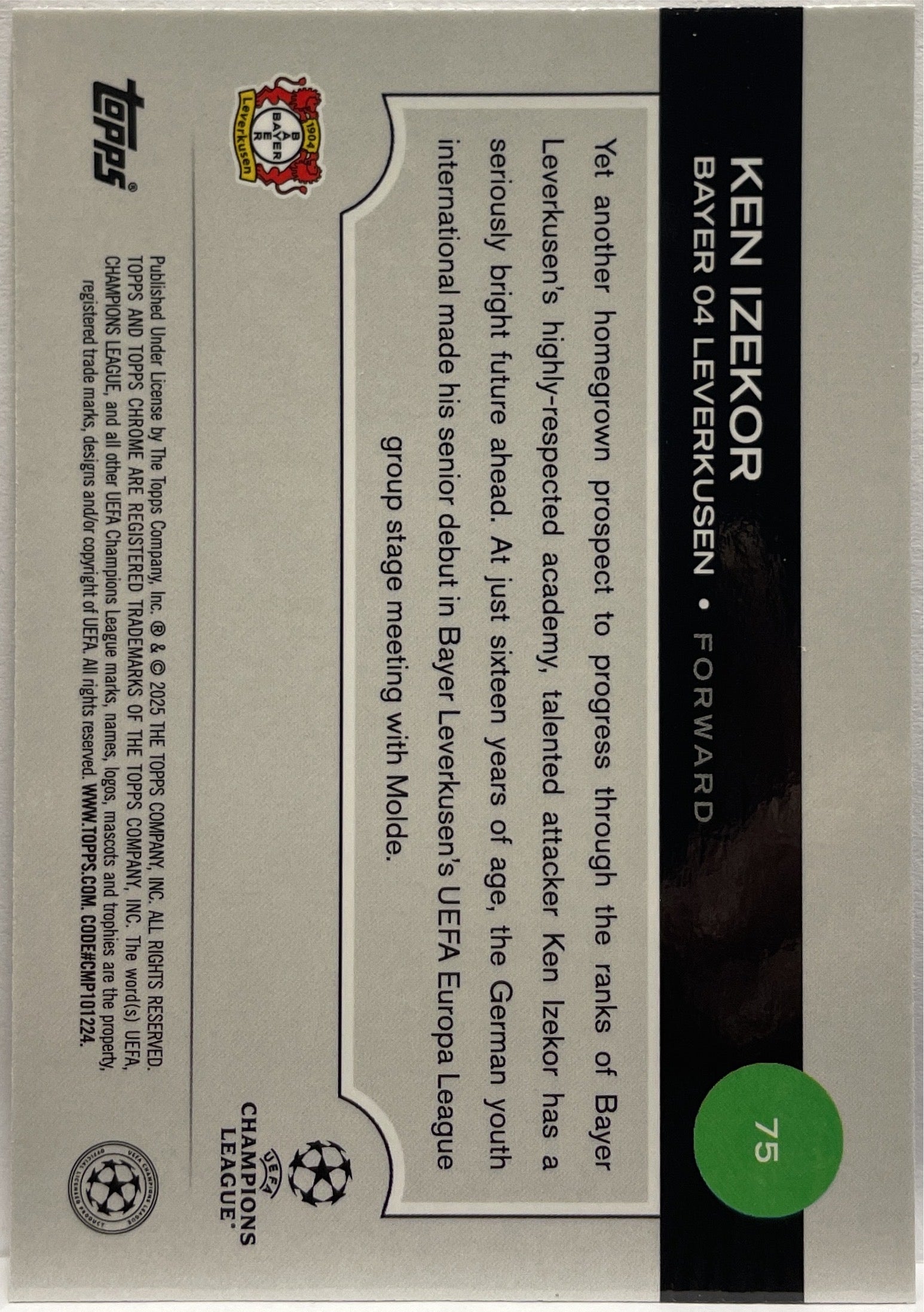 Ken Izekor 244/299 Rookie Violet Topps Chrome UCC 2024/25 Bayer 04 Leverkusem