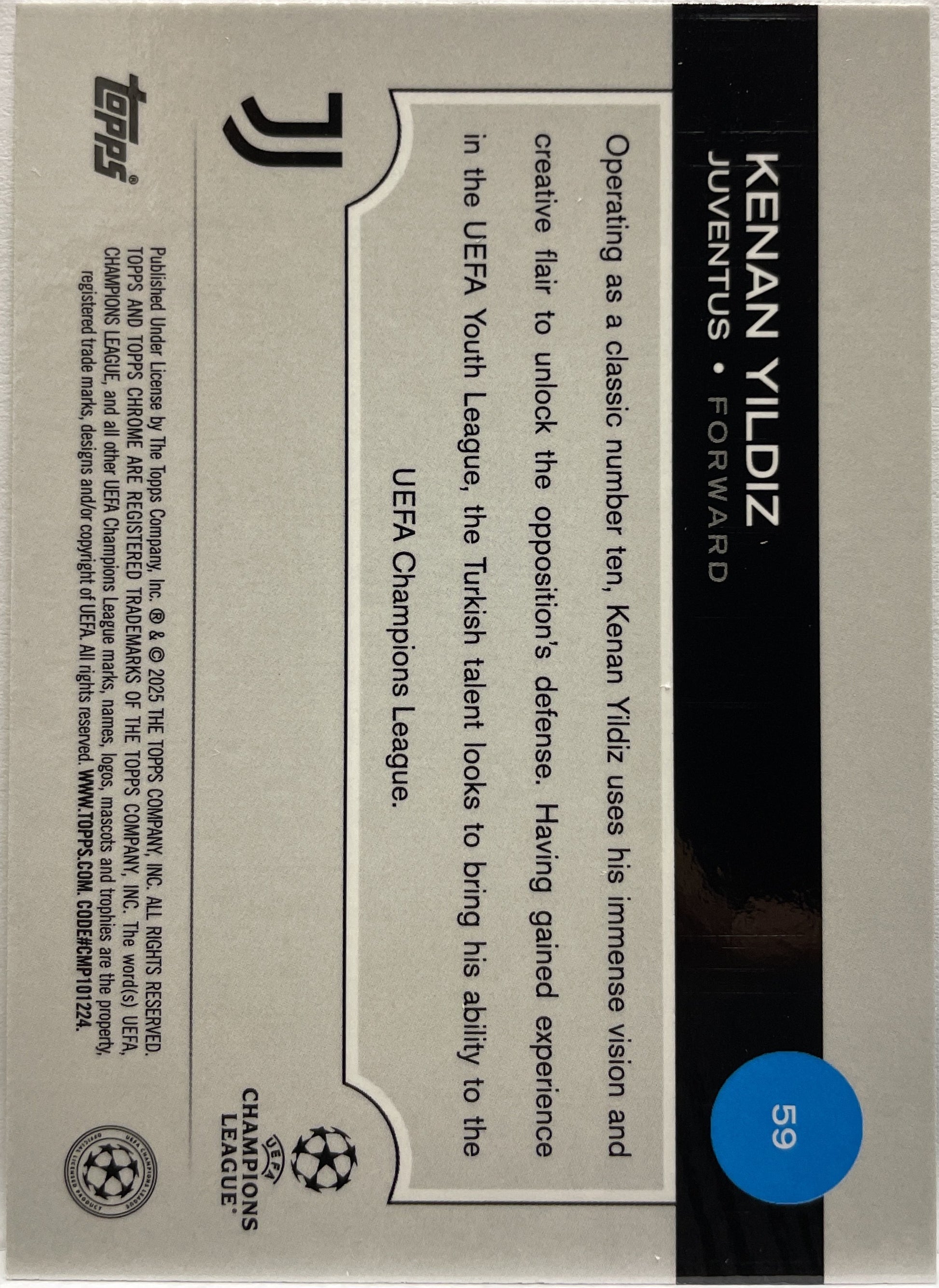 Kenan Yildiz 89/125 Future Stars All Star Rookie Green RayWave Topps Chrome UCC 2024/25 Juventus