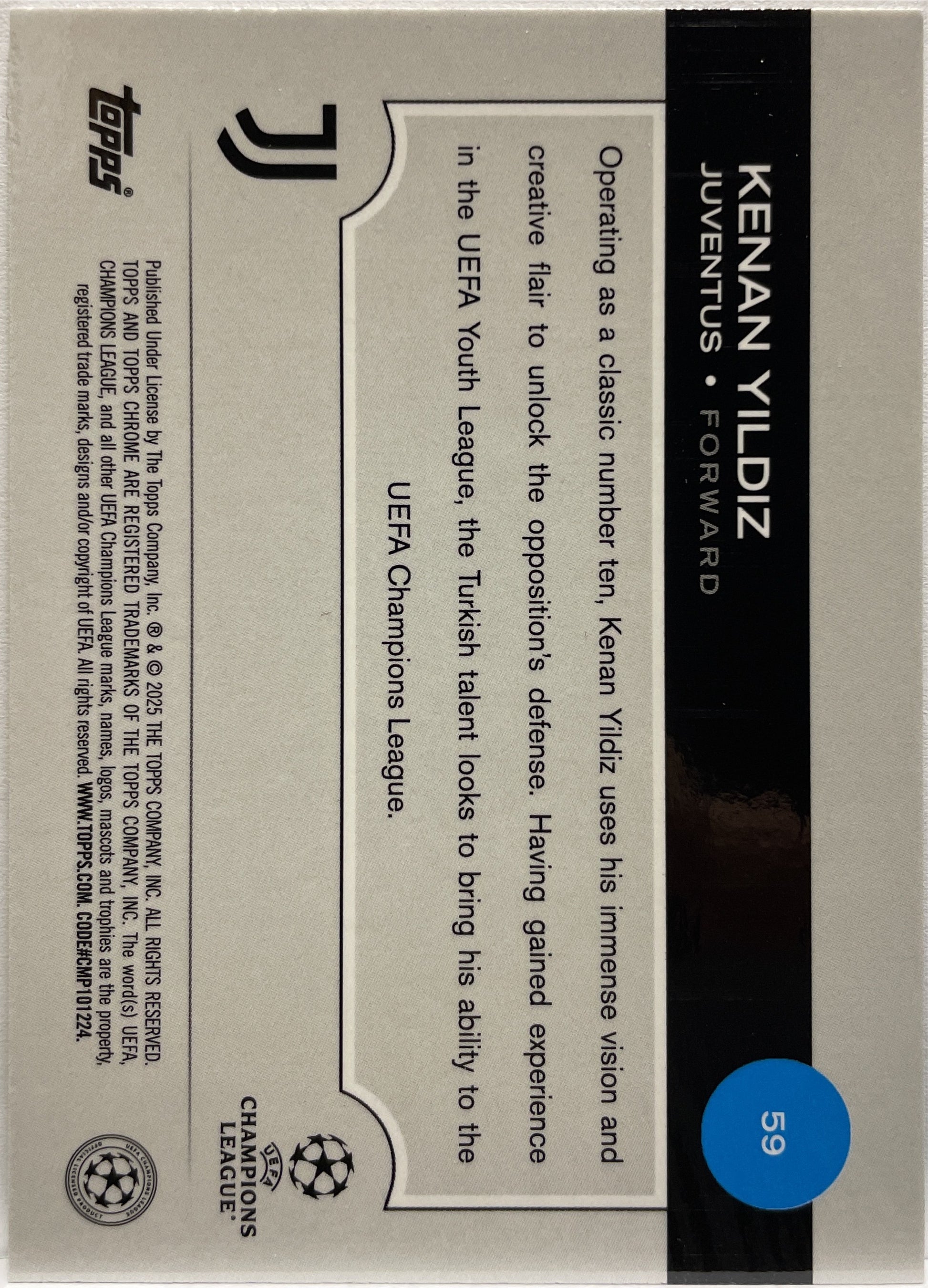 Kenan Yildiz 63/199 Future Stars All Star Rookie Aqua Topps Chrome UCC 2024/25 Juventus