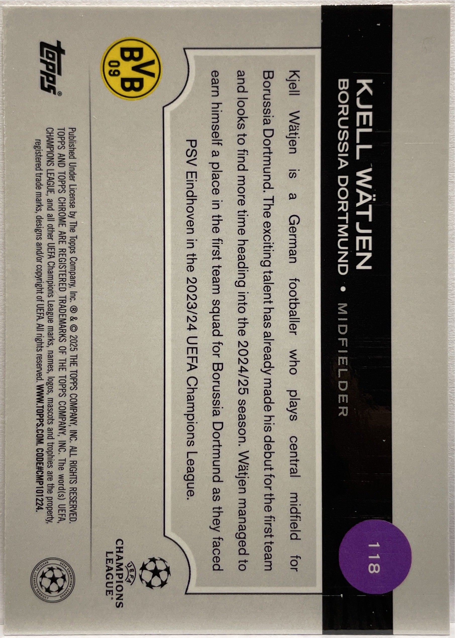 Kjell Watjen 169/175 Rookie Pink RayWave Topps Chrome UCC 2024/25 Borussia Dortmund