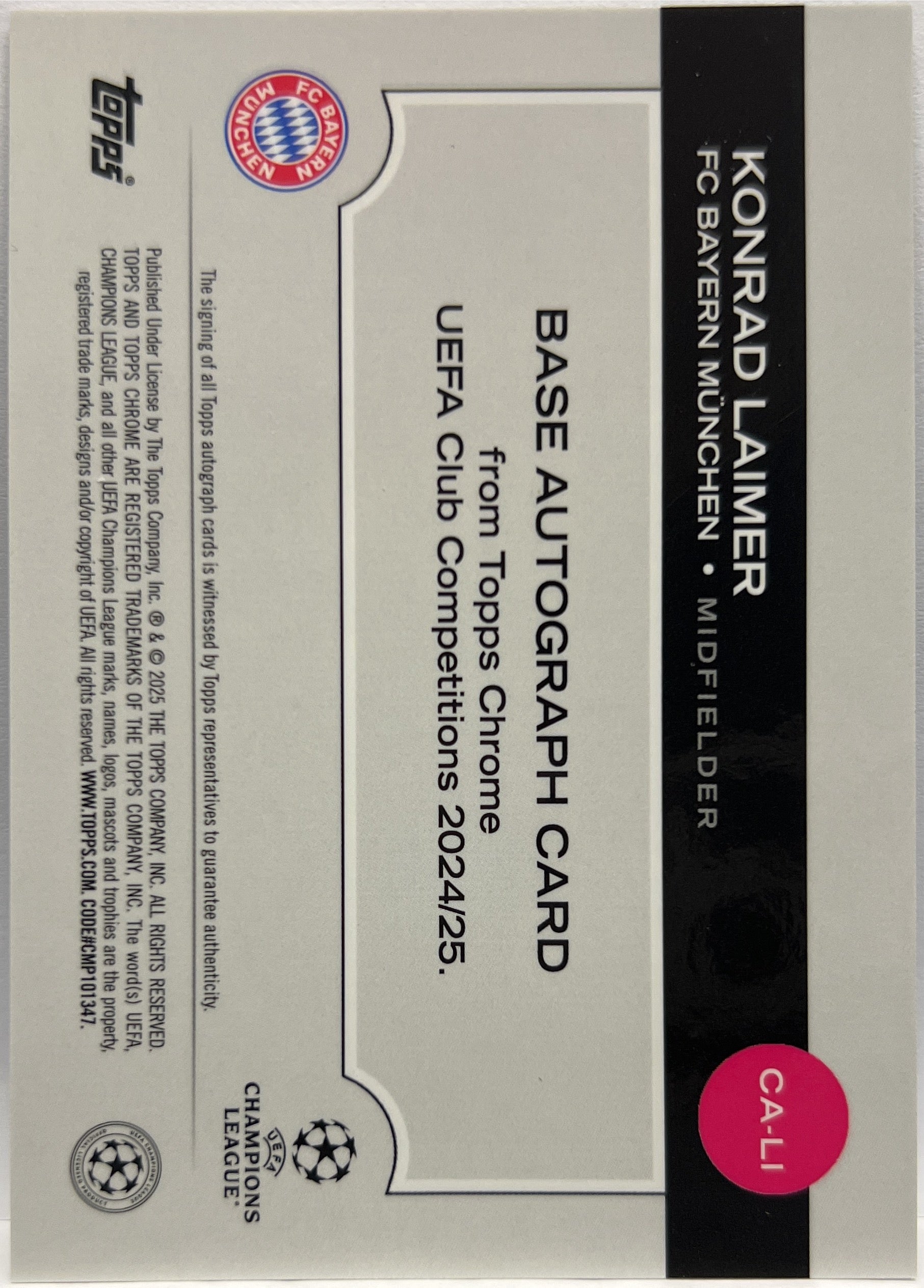 Konrad Laimer 101/150 Autograph Blue Topps Chrome UCC 2024/25 FC Bayern Munchen