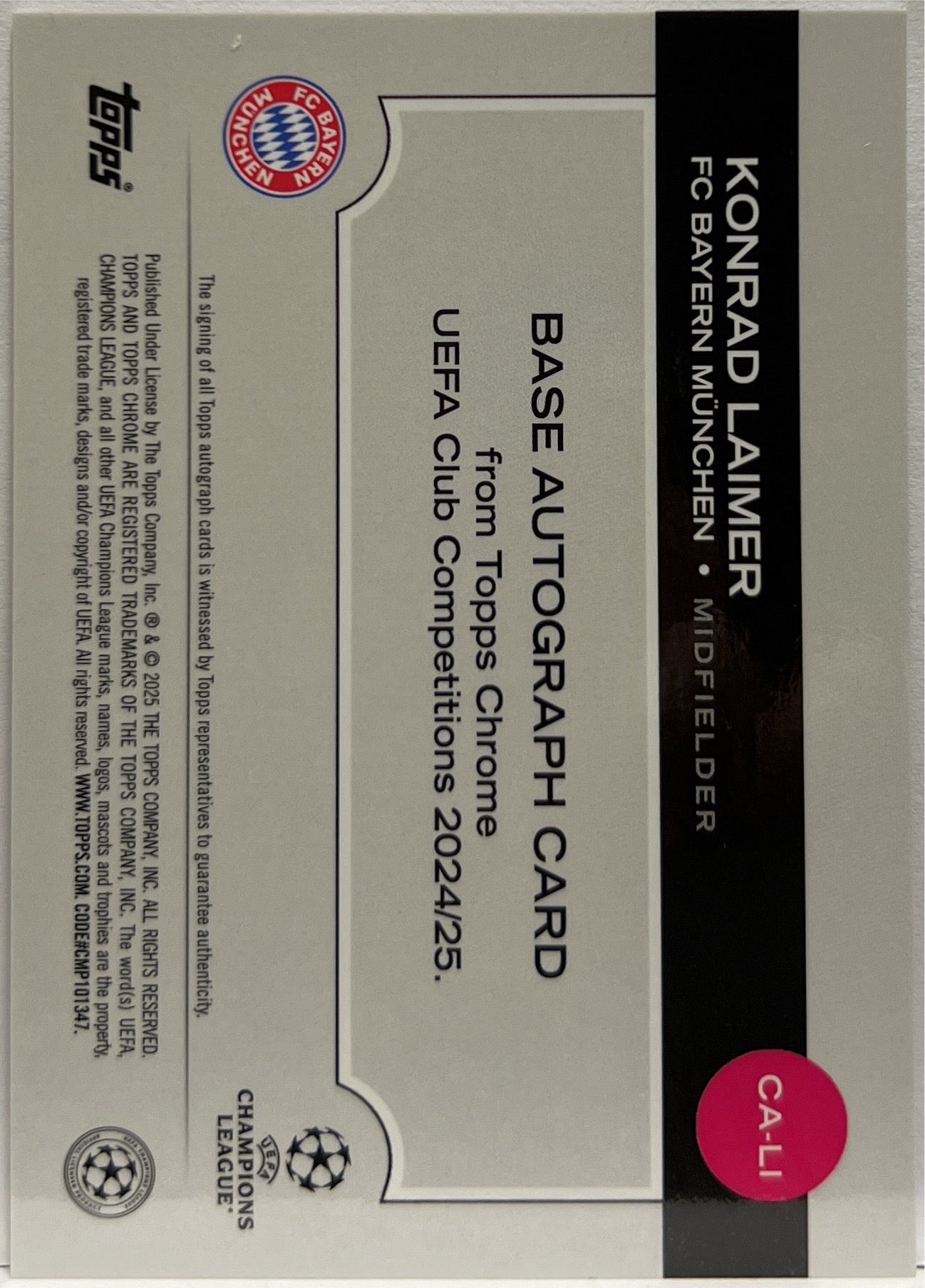 Konrad Laimer 75/250 Autograph Pink Topps Chrome UCC 2024/25 FC Bayern Munchen