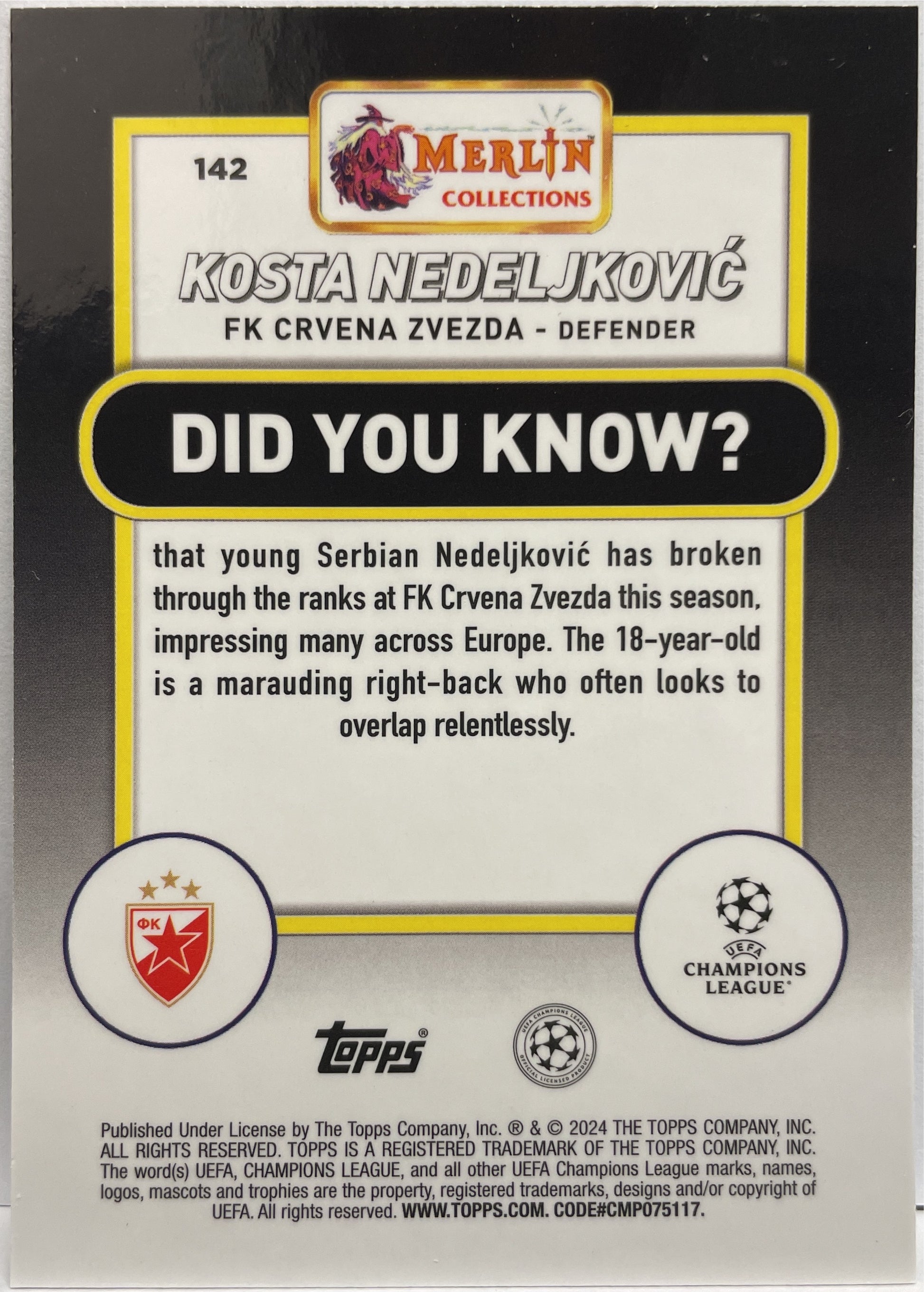 Kosta Nedeljkovic 165/199 Rookie Aqua Speckle Topps Chrome Merlin UCC 2023/24