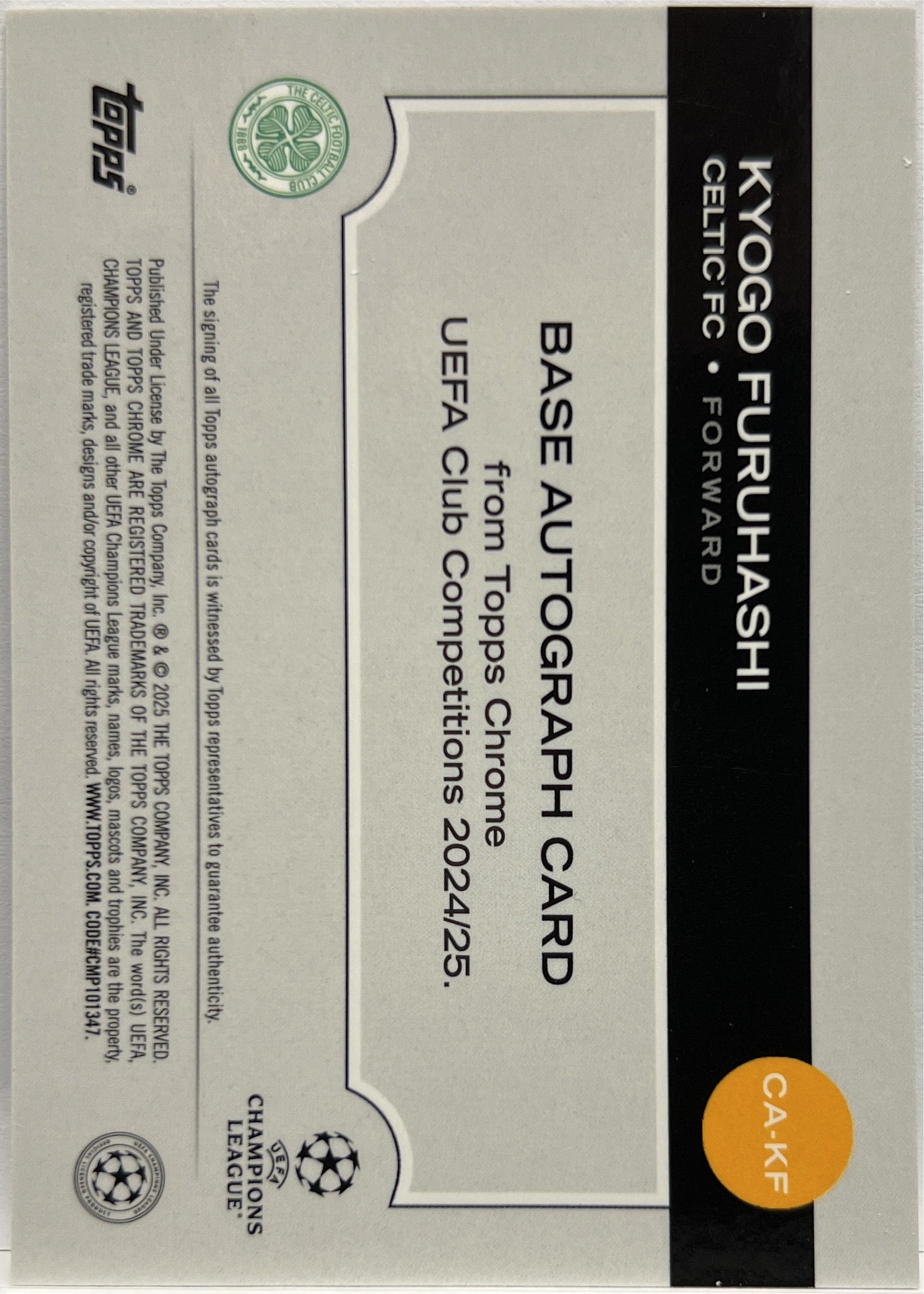 Kyogo Furuhashi Autograph Topps Chrome UCC 2024/25
