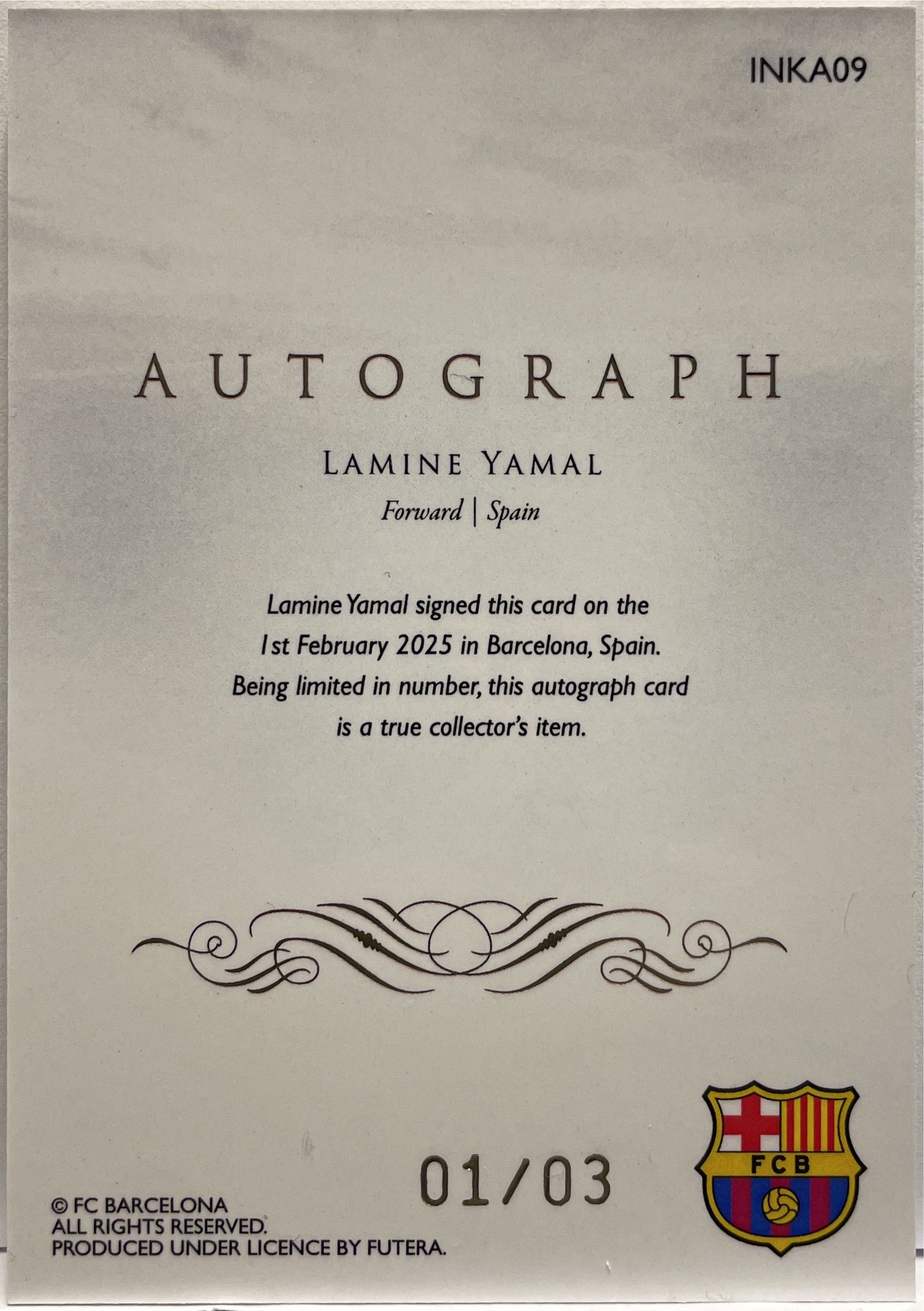Lamine Yamal 1/3 Autograph On Card Futera FC Barcelona 2024/25