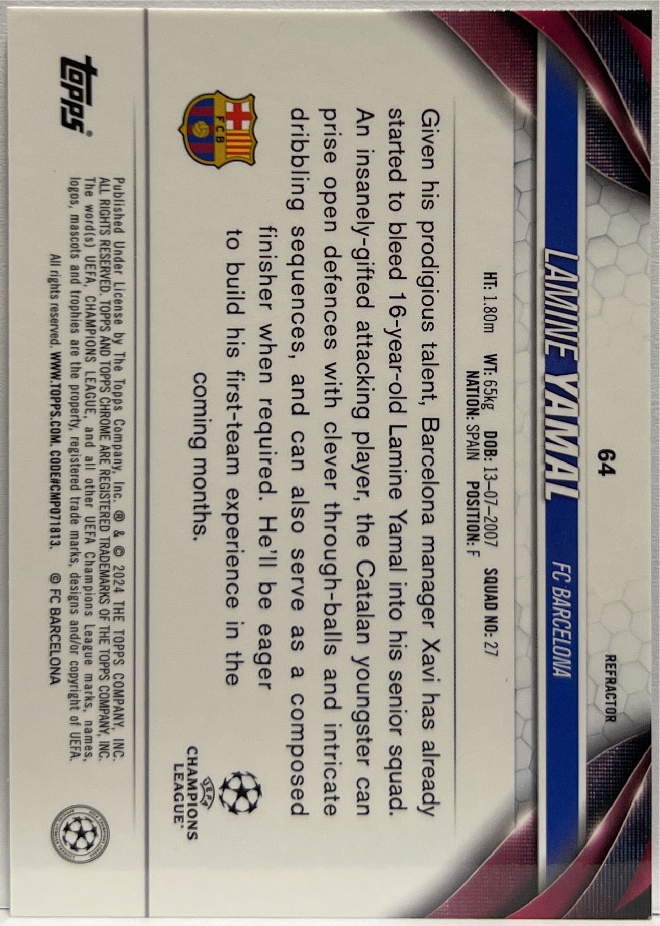 Lamine Yamal Rookie Refractor Topps Chrome UCC 2023/24 FC Barcelona