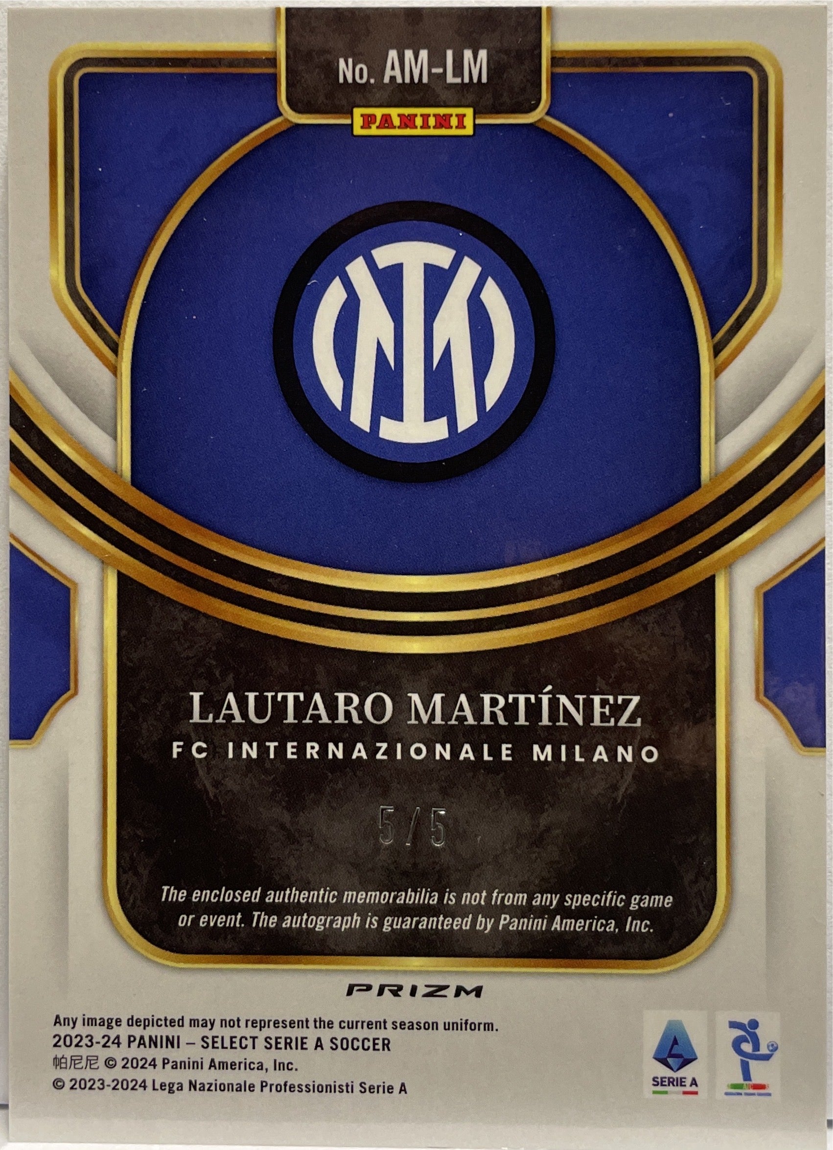 Lautaro Martinez 5/5 Patch Autograph Memorabilia Panini Select Serie A 2023/24