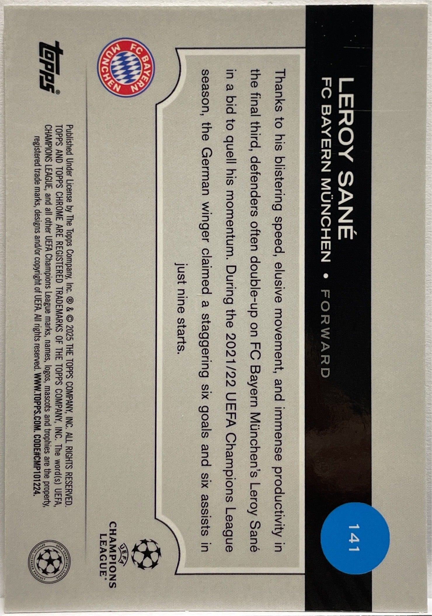 Leroy Sane 87/225 Night Vision RayWave Topps Chrome UCC 2024/25 FC Bayern Munchen