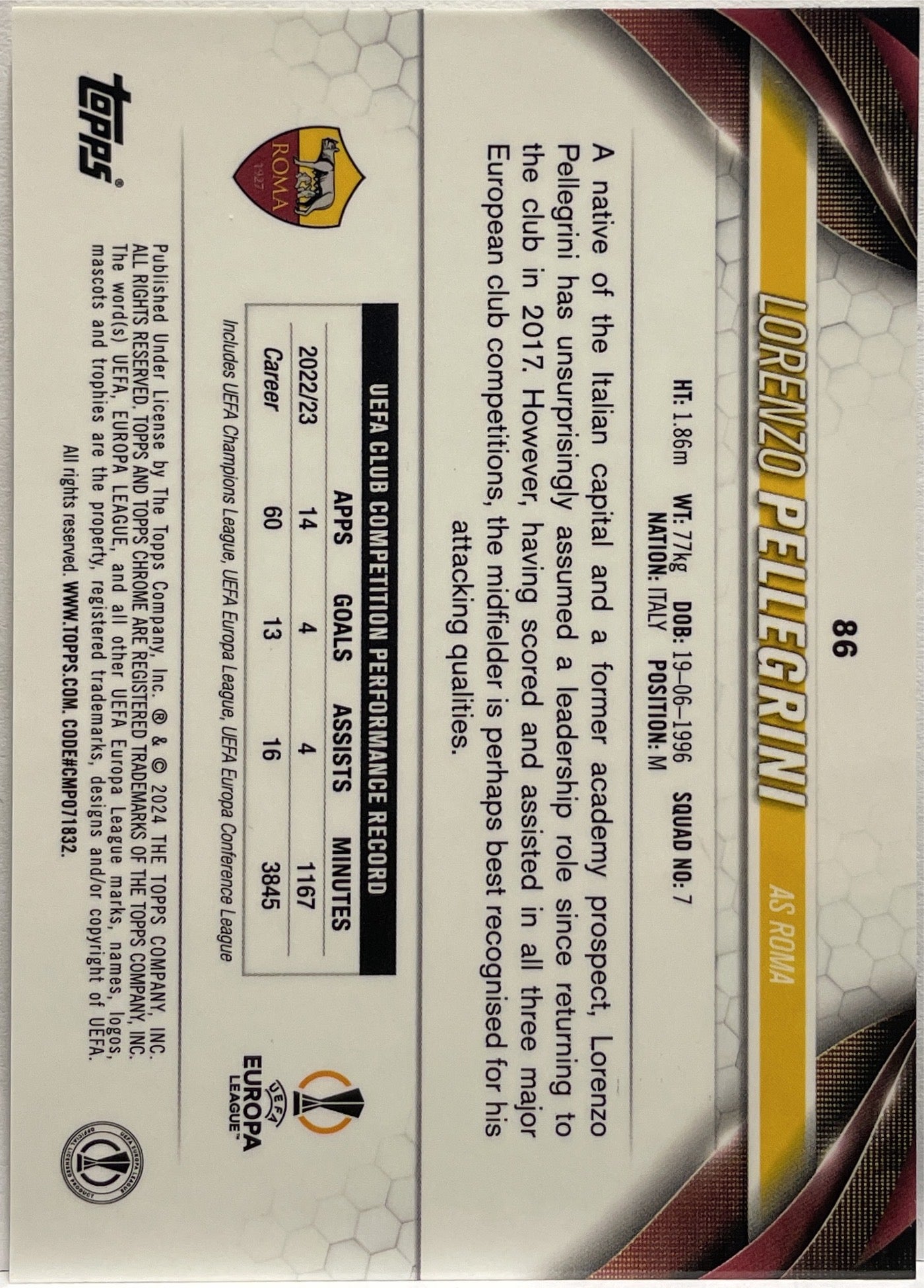 Lorenzo Pellegrini 2/11 I/XI Topps Chrome UCC 2024/25 AS Roma