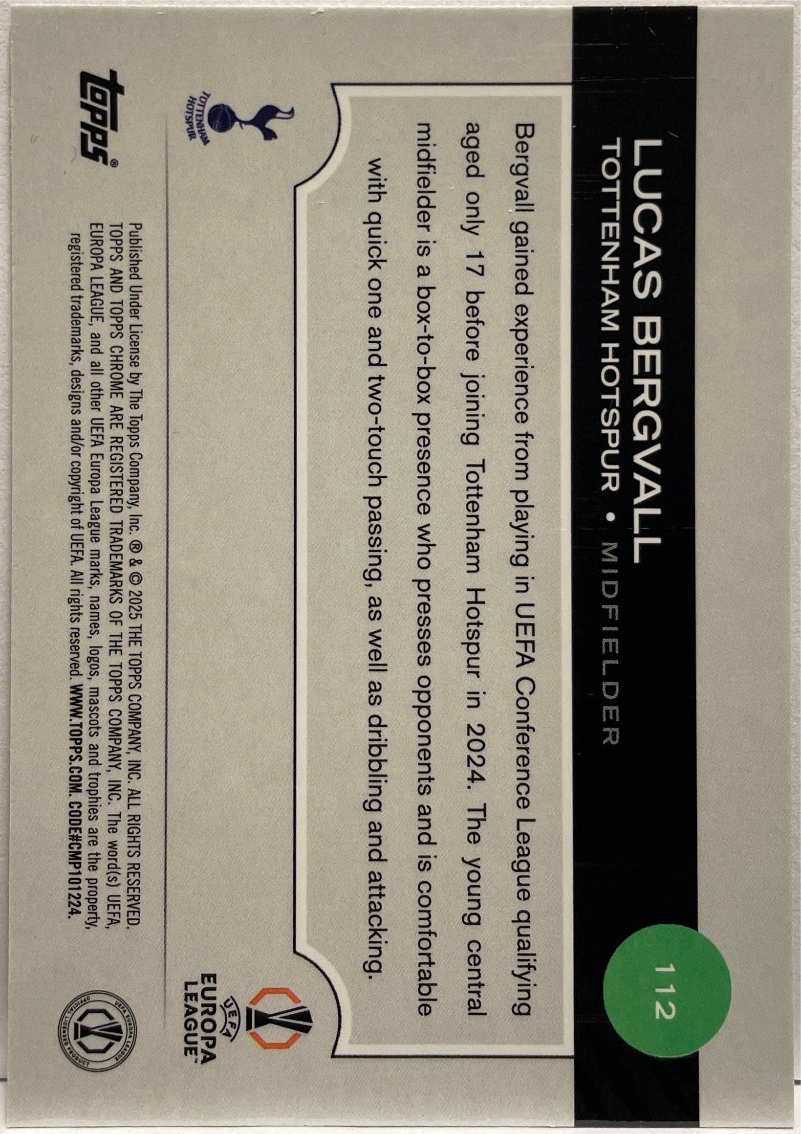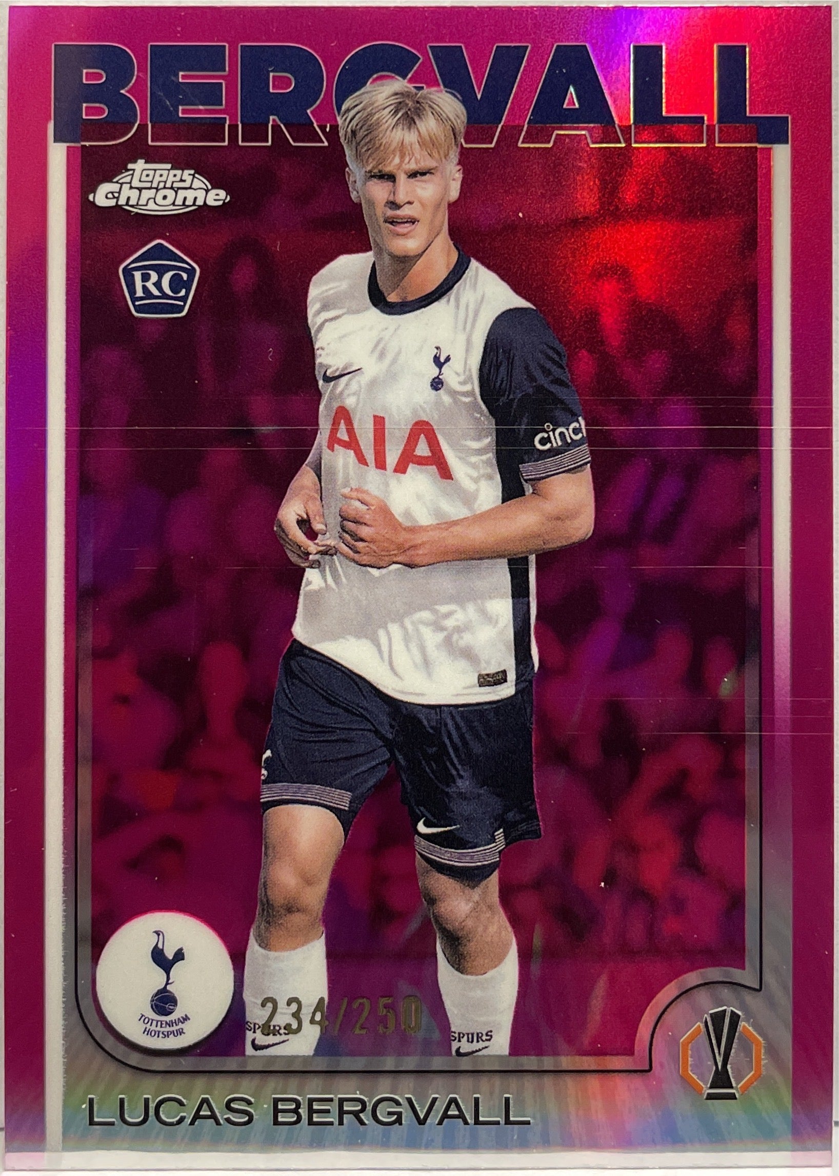 Lucas Bergvall 234/250 Rookie Pink Topps Chrome UCC 2024/25 Tottenham Hotspur