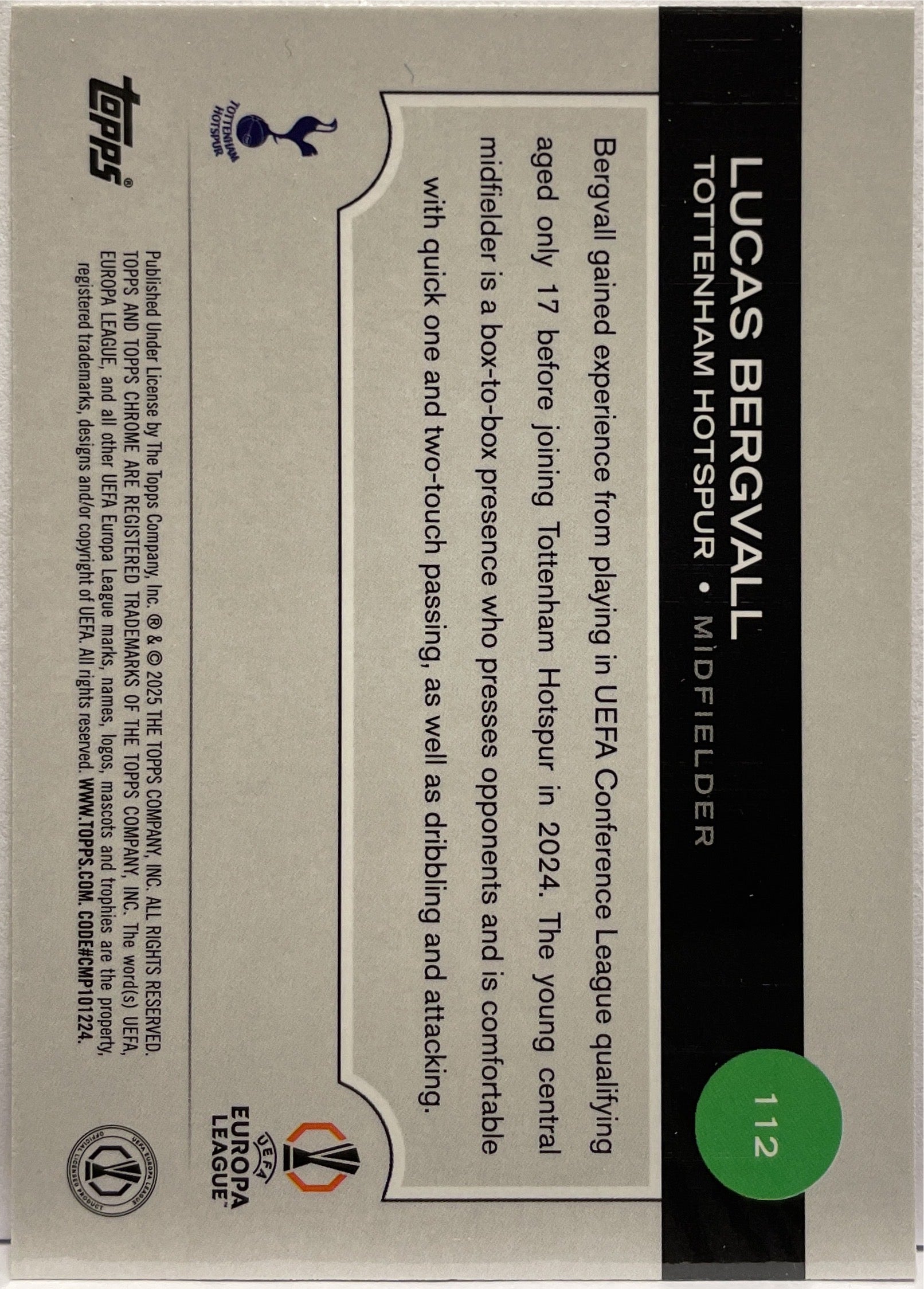 Lucas Bergvall 81/250 Rookie Pink Lava Topps Chrome UCC 2024/25 Tottenham Hotspur