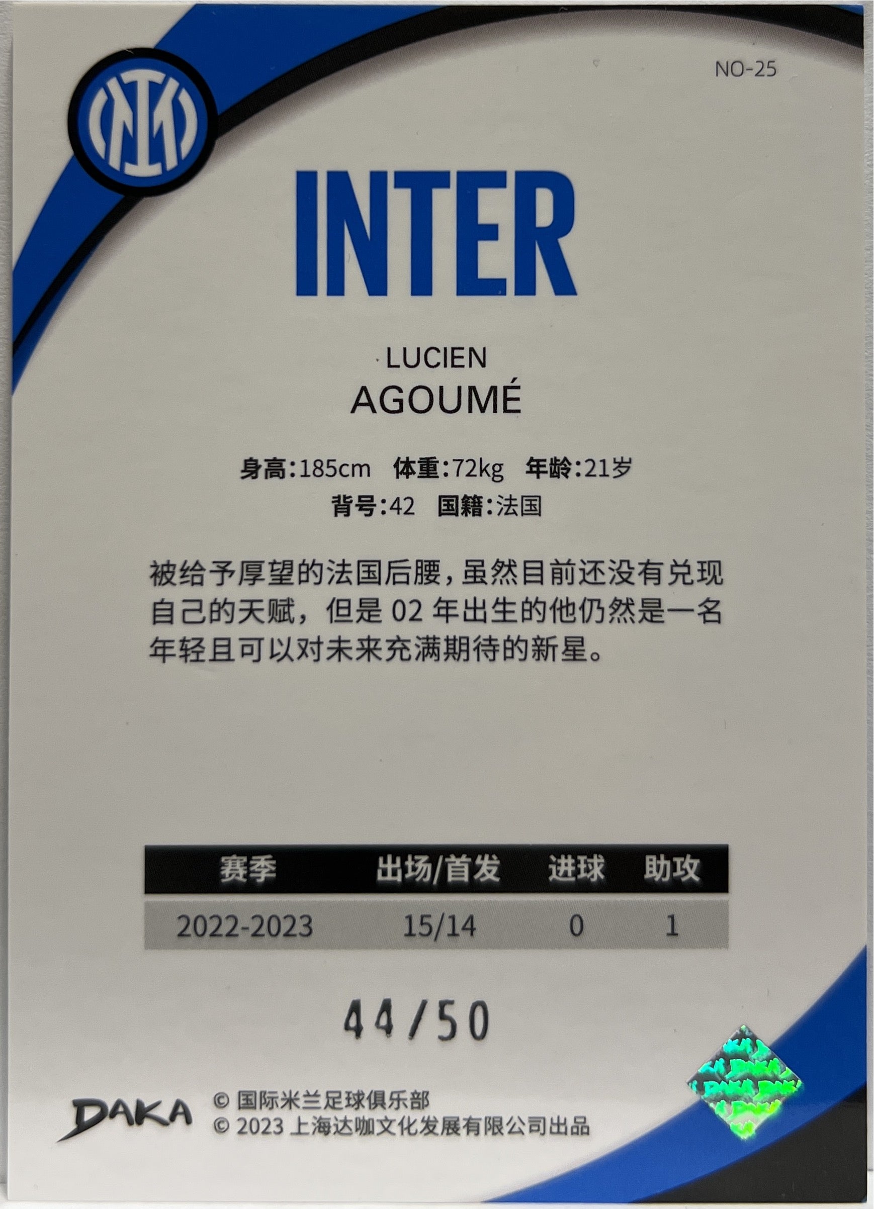 Lucien Agoume 44/50 Rookie Daka x Inter 2022/23