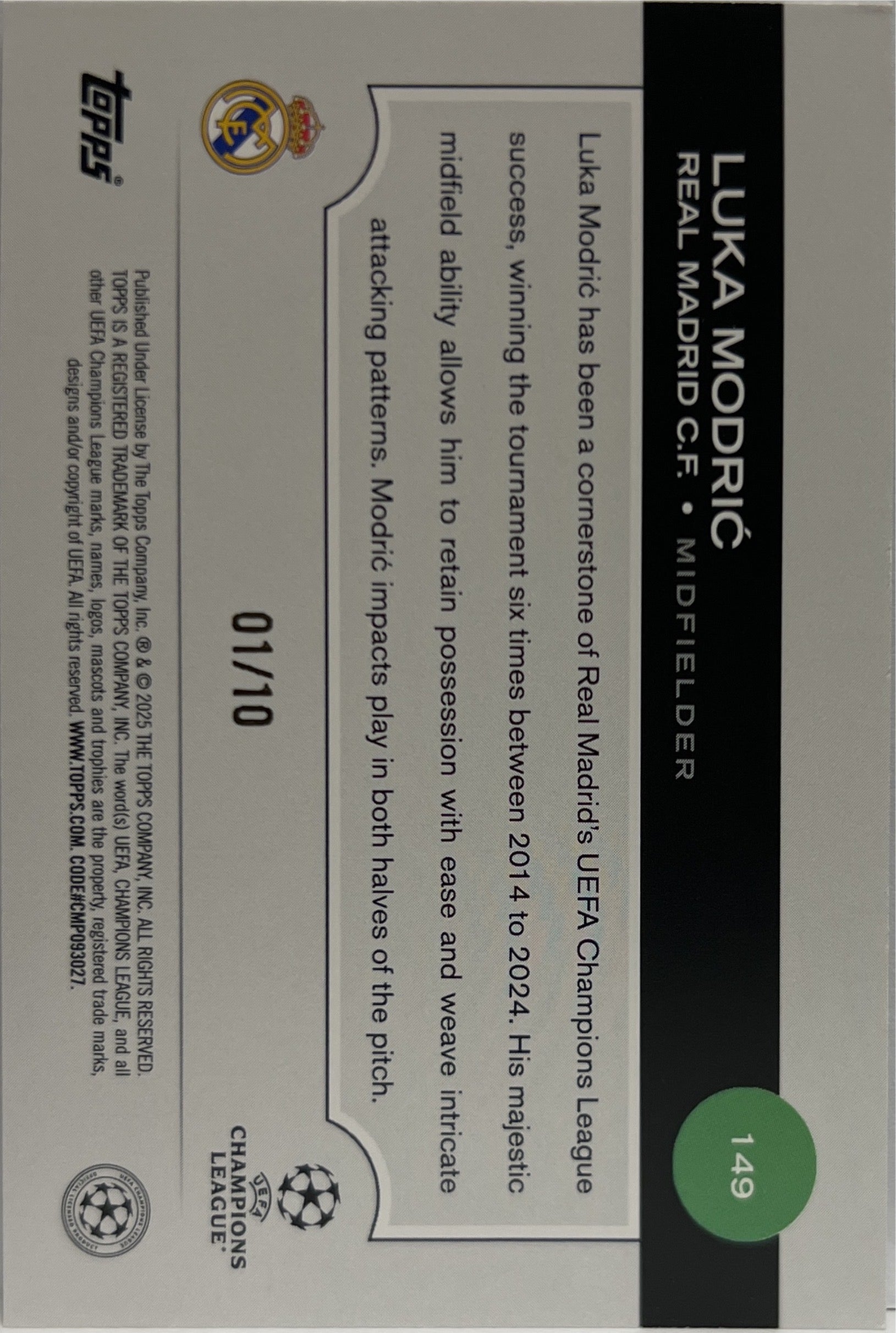 Luka Modric 1/10 Black Topps UCC 2024/25Real Madrid