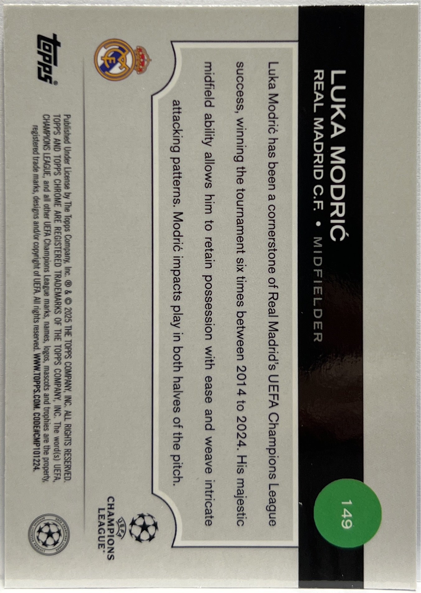 Luka Modric 31/150 Blue Lava Topps Chrome UCC 2024/25