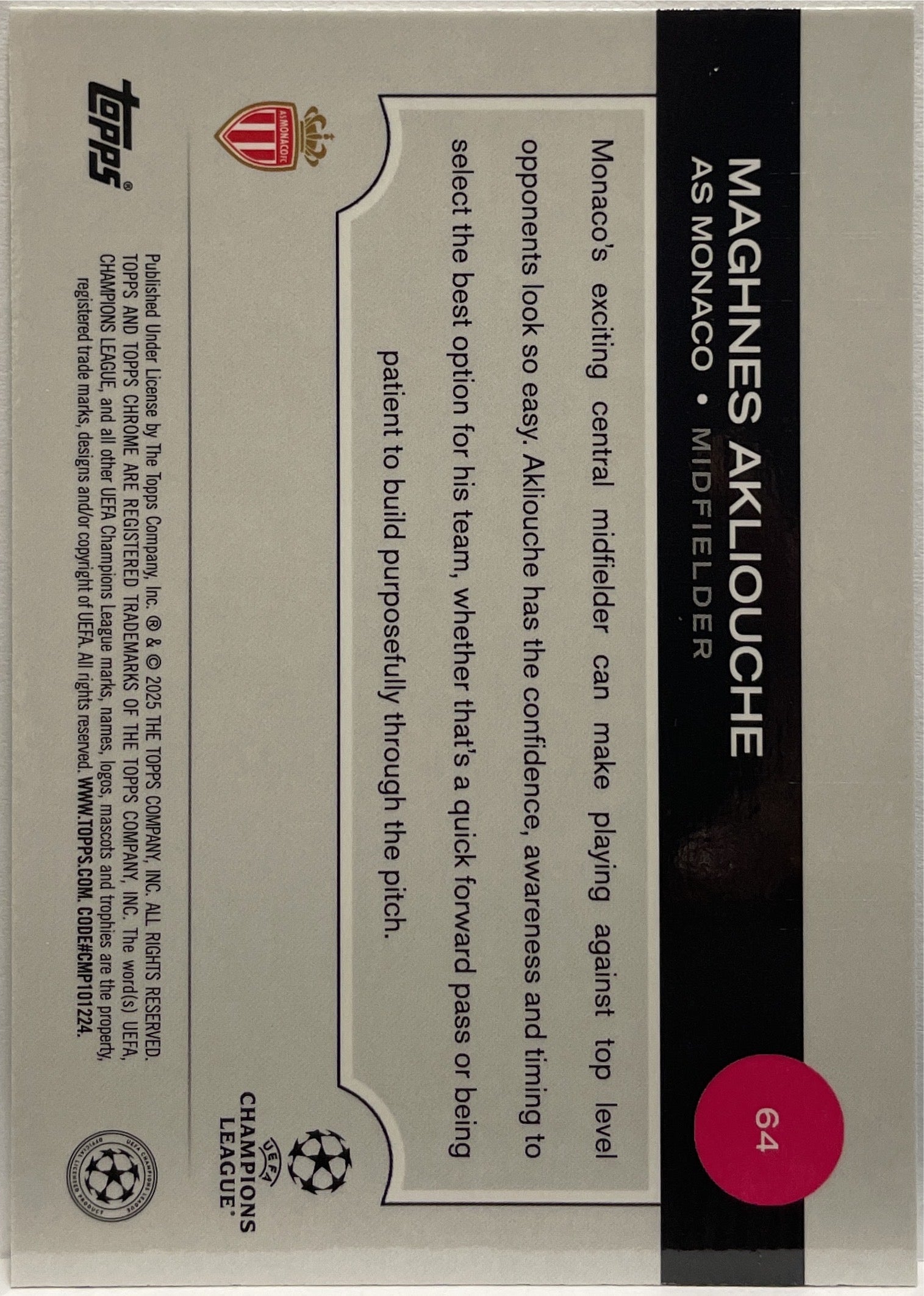 Maghnes Akliouche 5/199 Aqua Lava Topps Chrome UCC 2024/25 AS Monaco