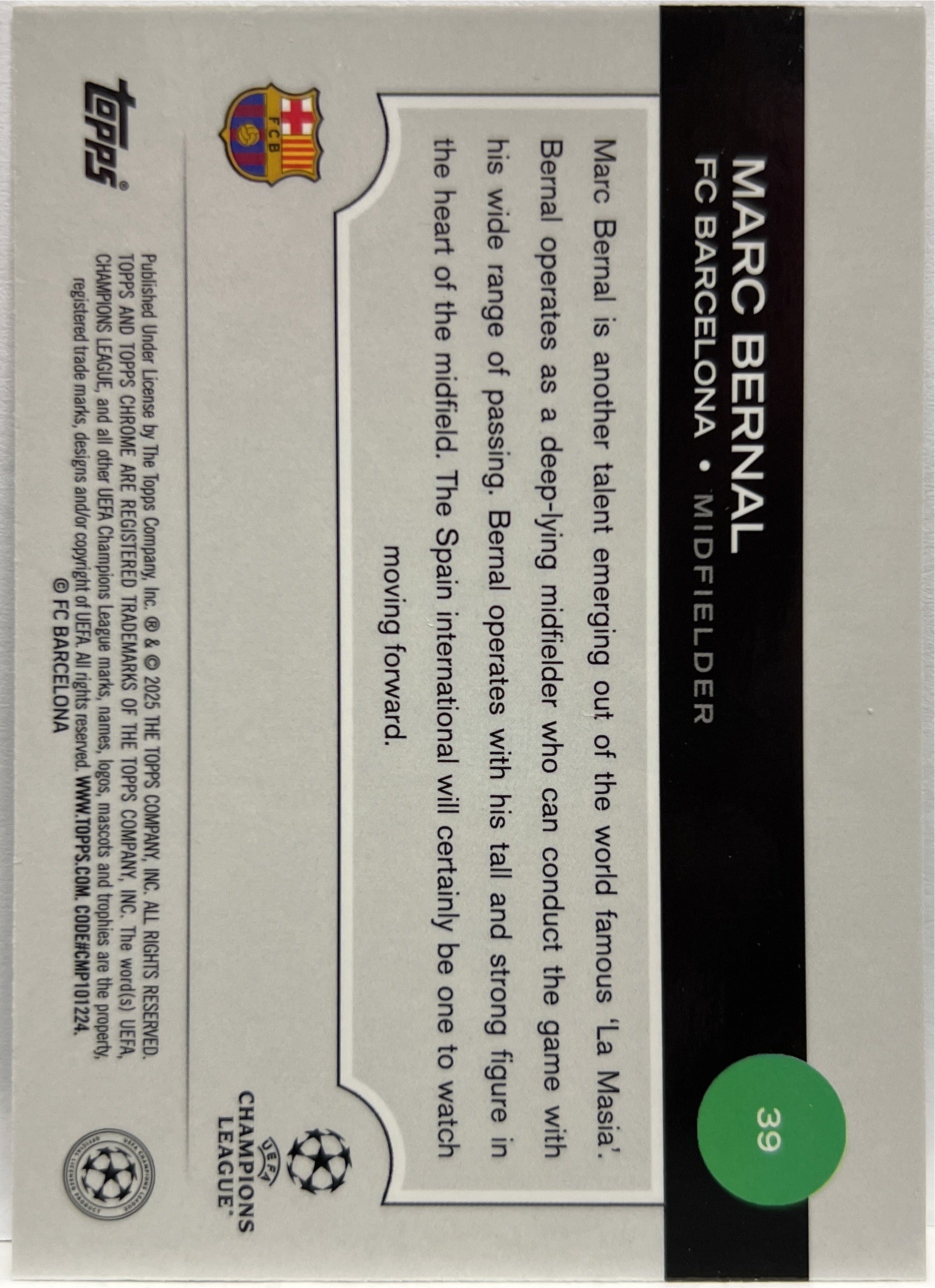 Marc Bernal 165/225 Rookie Night Vision RayWave Topps Chrome UCC 2024/25 FC Barcelona