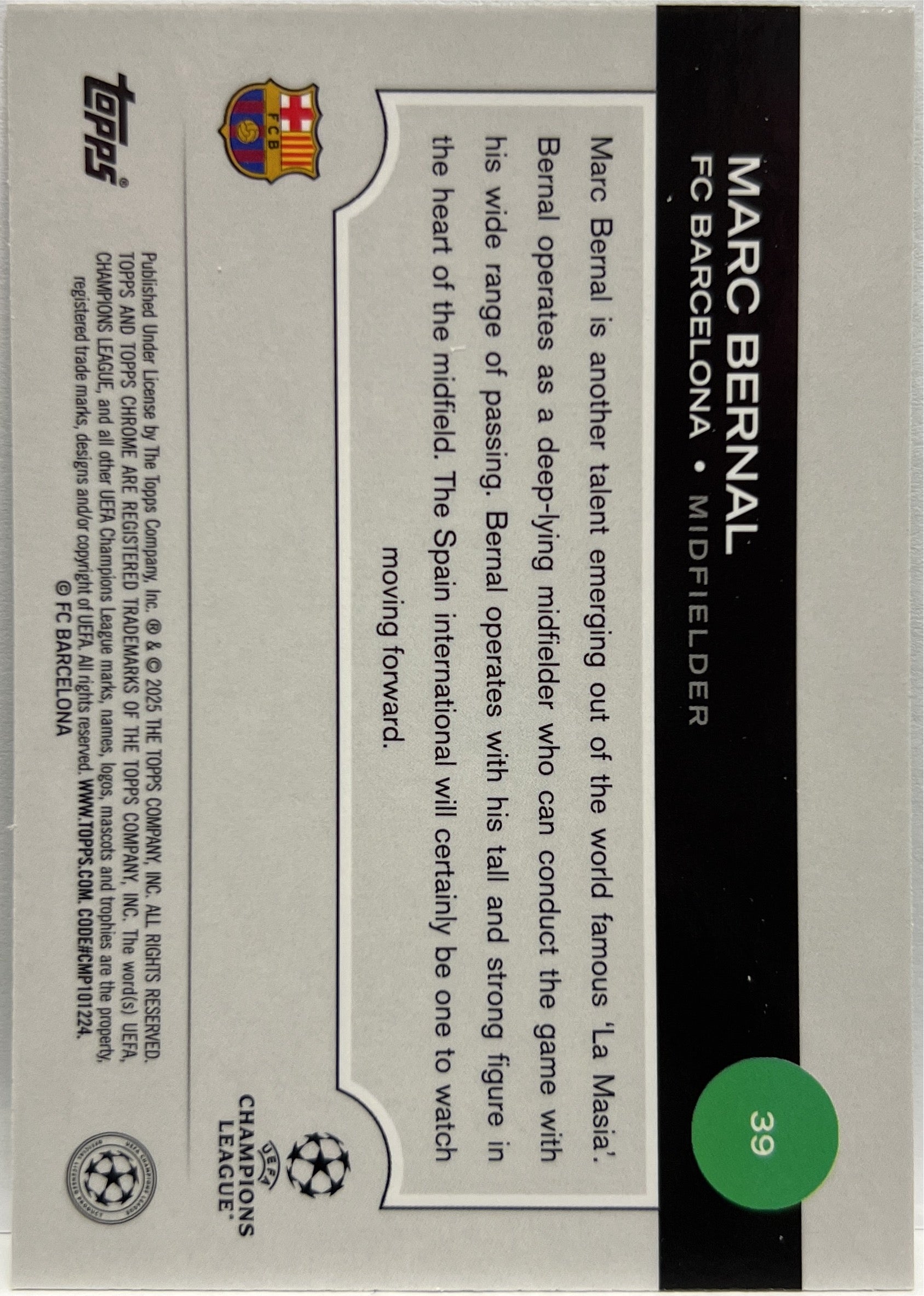 Marc Bernal 3/125 Rookie Green Lava Topps Chrome UCC 2024/25