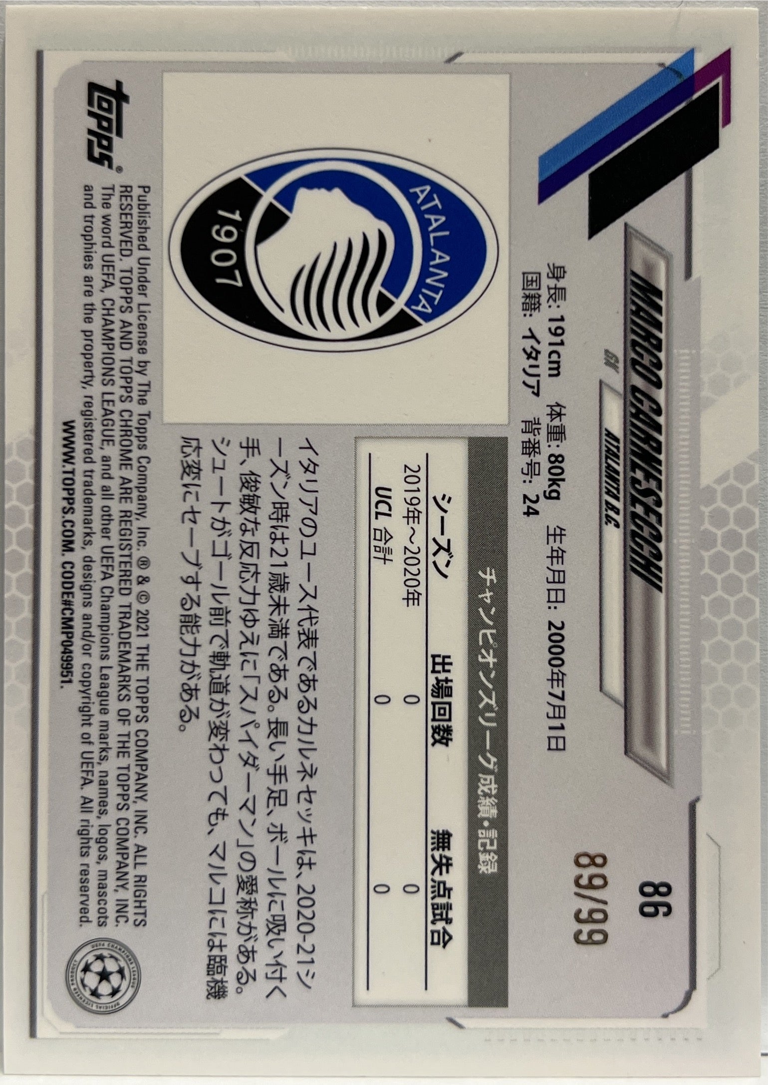 Marco Carnesecchi 89/99 Rookie Green Mojo Topps Chrome UCL 2020/21 Atalanta BC