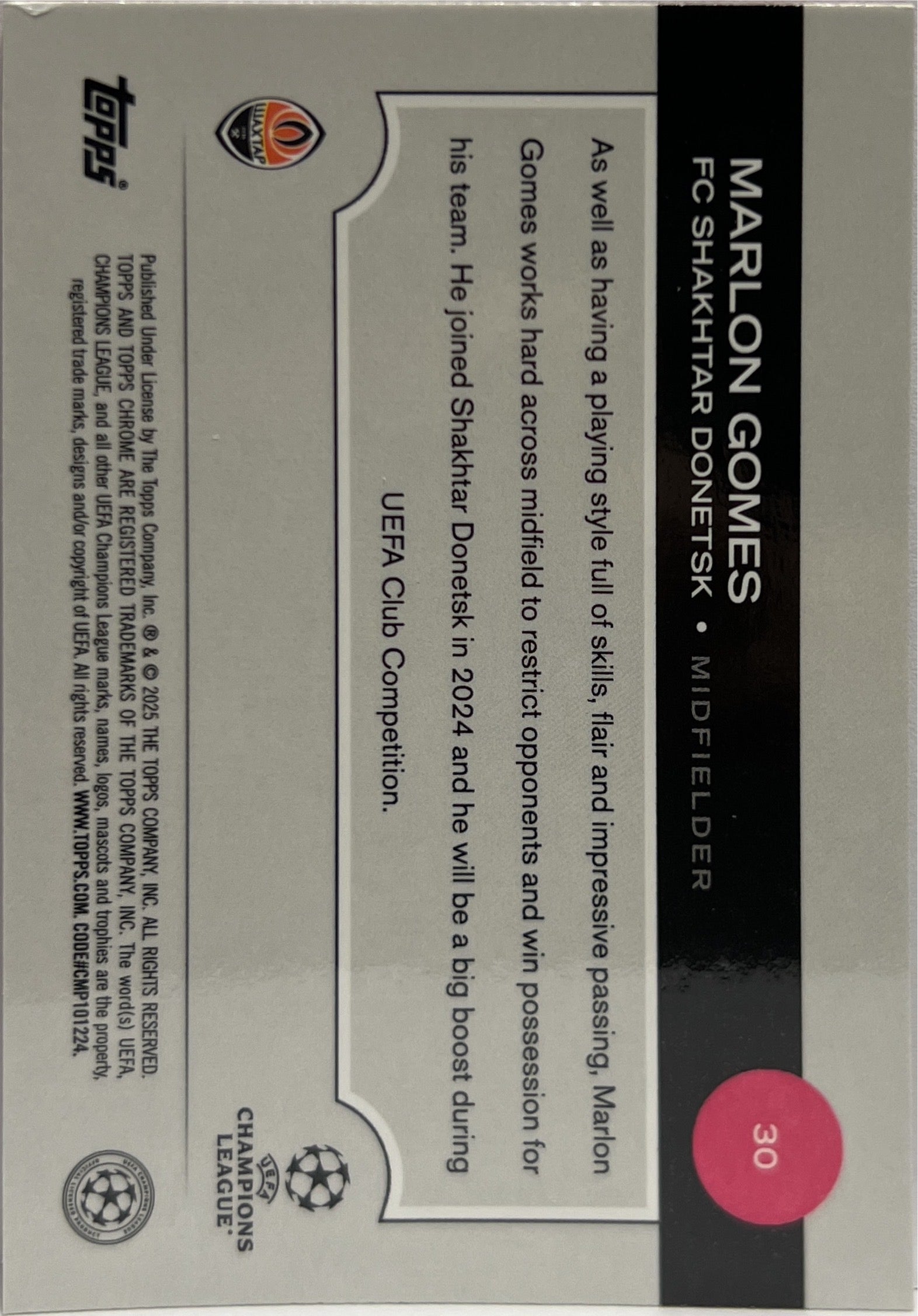 Marlon Gomes 147/250 Rookie Pink Topps Chrome UCC 2024/25FC Shakhtar Donetsk